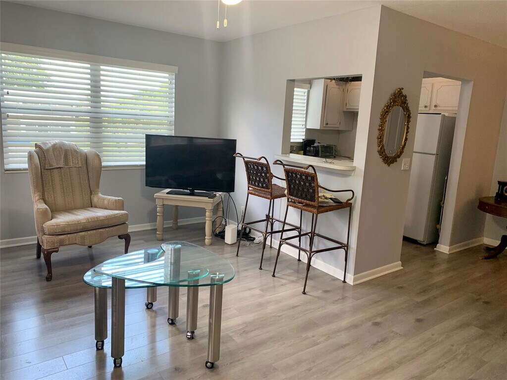 Cozy, fully furnished, and with plenty of light, corner 1 bedroom, 1 & 1/2 bath apartment on the second floor of an elevator building. Nicely appointed, with new laminate floors, central A/C, microwave, toaster/air fryer, additional storage on the balcony, and more. Enjoy peaceful park-like setting, and many Century Village recreational amenities, numerous clubs, a cafe, and a complimentary bus. Listed by: Prag Realtors Listing posted by Linda Castanon [SYNDID 4129766 10062025]