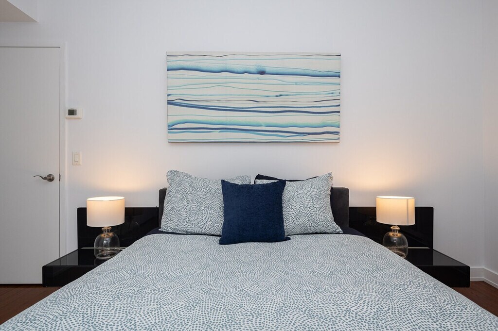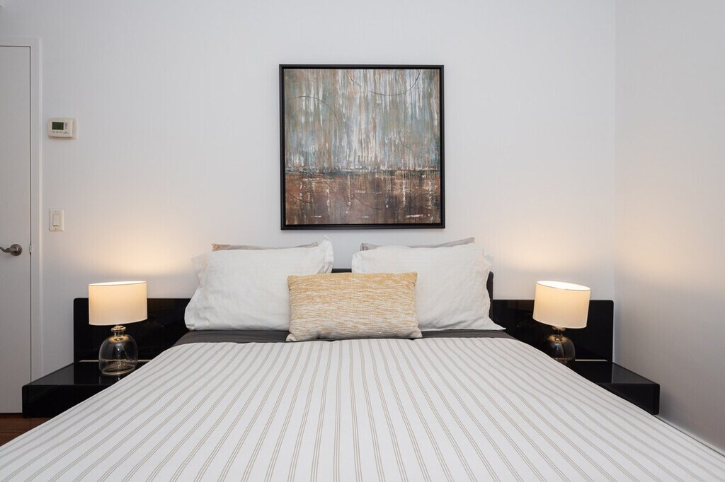 Embrace your unique style at this elegant and sophisticated apartment nestled in downtown Montréal, adjacent to the historic charm of Old Montréal. Just minutes away, immerse yourself in the vibrant culture of Quartier des Spectacles, Place des Arts, and Place des Festivals, ensuring you're always at the heart of the city's most electrifying festivals and events. This apartment welcomes four guests and features two bedrooms with two queen beds and two bathrooms. Enjoy the convenience of a controlled-access lobby, an electric vehicle charger, an elevator, a gym, and a security system. After visiting some exceptional apartments ourselves, we've strived to make this apartment as welcoming and cozy as possible for our guests. It offers a smart TV for your viewing pleasure and high-speed Wi-Fi to keep you seamlessly connected throughout your stay. We offer a variety of cleaning services that include bi-weekly or monthly options. If you require this service, please contact us for more information. This service has an extra charge. No parties of any kind or loud noises that can alter the harmony of residents are allowed. No smoking, including cannabis and cigarettes, inside the apartment, balcony, or the building. Please care about your home away from home. [SI]
