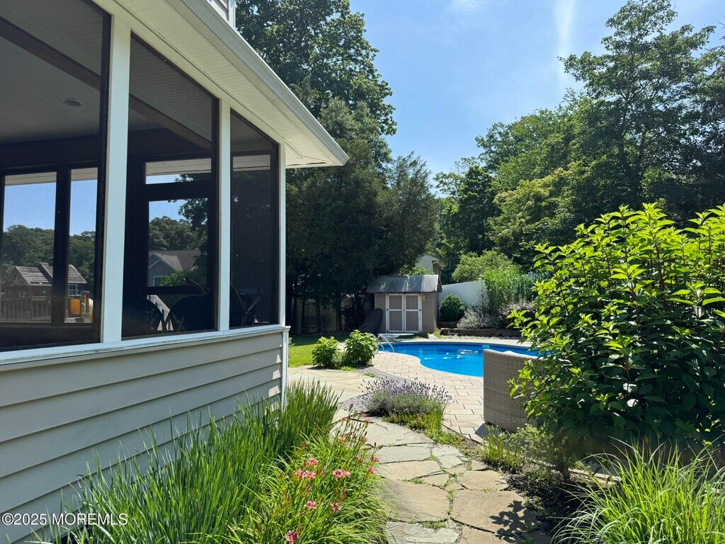 Spacious 5BR/4BA home on a private dead end st. steps from 794-acre Hartshorne Woods Park. Just 2 miles to NYC ferry and minutes to Sea Bright beaches and restaurants. Features include a heated in-ground pool,bluestone patio,screened porch,and a backyard surrounded by mature landscaping. Open kitchen/den with heated floors and fireplace,two-story great room with stone hearth,radiant heated tile floors,and versatile bonus spaces. Primary suite offers a balcony,spa-like bath,and custom closet. Attached heated garage,2nd-floor laundry,walk-out basement,and deck complete this rare rental. Listing agent is property owner.