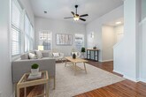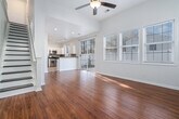 Beautiful two-bedroom, two-and-a-half-bath home with an inviting layout. The main level features stunning hardwood floors and a spacious living room with soaring vaulted ceilings. Upstairs, you'll find two bedrooms and an open loft area, perfect for a study or cozy den. The all-white kitchen is equipped with stainless steel appliances. Enjoy the privacy of a serene backyard. Beautiful two-bedroom, two-and-a-half-bath home with an inviting layout. The main level features stunning hardwood floors and a spacious living room with soaring vaulted ceilings. Upstairs, you'll find two bedrooms and an open loft area, perfect for a study or cozy den. The all-white kitchen is equipped with stainless steel appliances. Enjoy the privacy of a serene backyard.