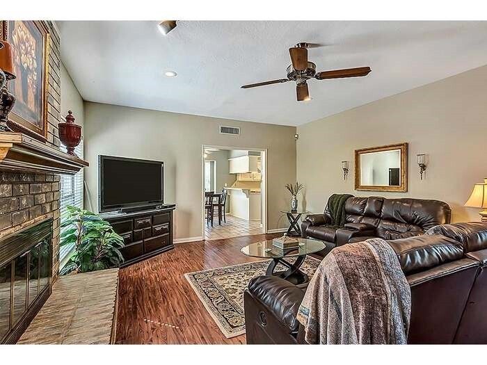 Great location in a good school zone. Close to grocery stores,restaurants,and more. Features wood,tile flooring. Spacious kitchen with white cabinets—bright and clean. Large living room and family room with high ceilings. Built-in cabinets in one of the bedrooms. Spacious backyard. MLS# 65972602