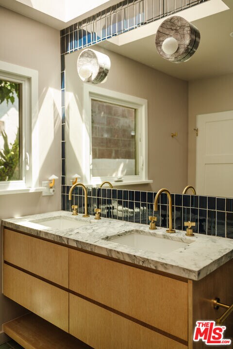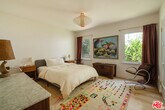 2443 N Vermont Avenue is a one-of-a-kind 4-bed, 4-bath property with ADU that was once part of the renowned Wallace Neff Los Pavoreales Estate. This Spanish style home, rebuilt in 1948 by the notable architect J. A. Murray, has been thoughtfully redesigned and seamlessly blends historic charm with modern luxury. The gated entrance leads you into a private sanctuary surrounded by mature landscaping, including bay fig trees, olive trees, and ficus hedges. Enter to the expansive living and dining rooms which feature original coved ceilings, decorative moldings, and large windows overlooking the lush surroundings. The stunning open-concept kitchen boasts custom white oak cabinetry, handcrafted Mexican Saltillo flooring and backsplash, a honed marble island and counters, and high-end appliances. The primary bedroom includes an ensuite bath with a large walk-in shower, a blue-hue Spanish tiled wall, and dual sinks. Perfect for enjoying Southern California weather, the backyard is a serene oasis with a pool/spa, built-in BBQ, and ample space for lounging and dining al fresco. The guest house, ideal for a home office or additional living space, includes a full bath and kitchenette. Situated on a large corner lot, 2443 N Vermont Avenue is conveniently located near local shops, Griffith Park, The Greek Theatre, and more. MLS# 25574183