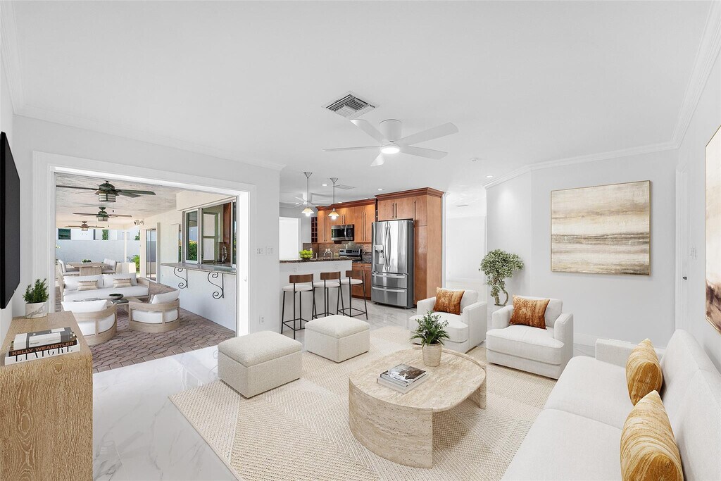 Unique waterfront residence in Lighthouse Point seeking annual tenant. This spacious 4-bedroom,3-bathroom home boasts 100' of unobstructed waterfront access,no fixed bridges and just minutes away from the inlet and ocean. The home features brand new flooring,updated LED lighting and was just freshly painted. Additionally,2 living spaces and the primary suite tucked away from the other 3 bedrooms,makes for optimal privacy. A large 2-car garage and circular driveway provide ample parking and storage. Enjoy the Florida sun in your private pool while the covered patio offers the best in outdoor living! Lawn and pool maintenance included in the rent and pets welcome with deposit,and subject to landlord approval. MLS ID F10540389