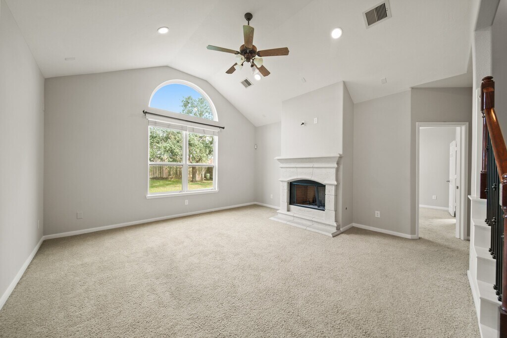 Gorgeous all-brick 4 bedroom,2.5 bath home in a phenomenal subdivision renowned for its top-rated schools! Freshly painted interiors welcome you into a spacious,open layout. A tiled foyer leads to a versatile study or formal dining room with rich wood laminate flooring. The open-concept design connects the living areas,creating an inviting atmosphere for gatherings. The chef’s kitchen features 42” cabinets,sleek gas cooktop,granite countertops,and a water softener with reverse osmosis system. The living room offers a cozy fireplace and vaulted ceilings for an airy feel. Upstairs includes a spacious game room,media room with wall-mounted speakers,and 3 generously sized bedrooms. Enjoy the privacy of no backyard neighbors for peaceful outdoor living. All Appliances included. ?? 4 Bed - 2.5 Bath - Game Room - Media Room - Top Schools - No Back Neighbors MLS# 39268544