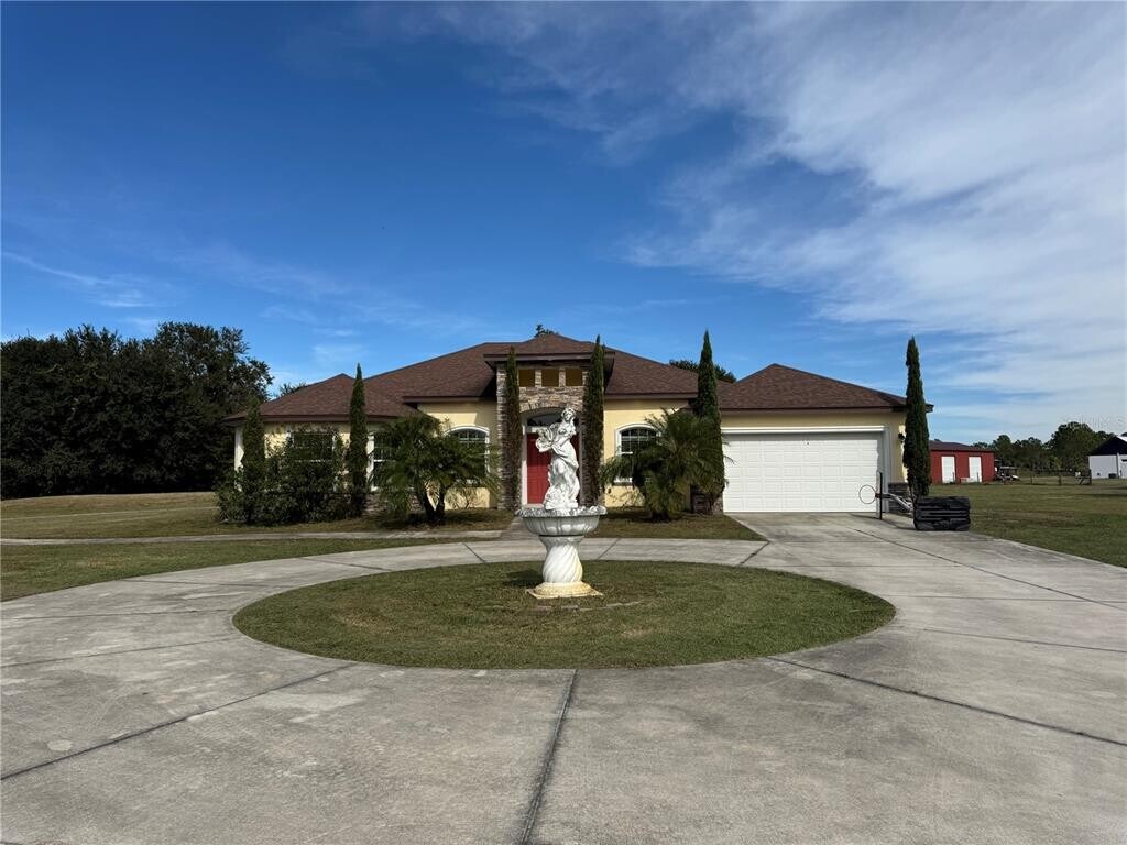 Move in ready,Furnished rental ready to move in on Oct 15th. Peaceful and serene ranch tucked away from the hustles of the city. Walk into the entry foyer with 12 ft ceiling,open family room,kitchen with granite counter tops and new appliances. It's custom built to allow maximum open space for large gatherings. Fifth bedroom is currently used as theatre room. All bedrooms have bathrooms which is a great plus. There is an outside kitchen for extended cooking. Gazebo overlooking the heart shaped pond with lot of fishes. A peaceful retreat yet close to everything in Bartow and Winter Haven. A mother-in-law suite with 3 bedrooms and 2 bathrooms is also available for $2600. Also a large barn suitable for storage and workshop is also available for rent. MLS# TB8458638