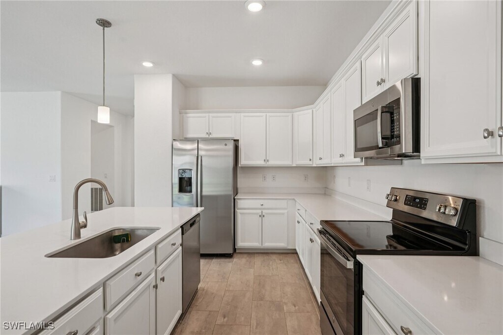 Like-new single-family home with peaceful lake views in Orange Blossom Ranch. Built in 2022,this 3-bedroom,3-bath home offers 1,836 sq ft of bright,open living space in a quieter,newer section of the community. Tile flooring flows through the main living areas,and the open kitchen connects seamlessly to the dining and living spaces; ideal for everyday living or entertaining. Sliding doors open to a private screened lanai overlooking the lake,perfect for morning coffee or relaxing evenings. The split-bedroom layout provides privacy,with a flexible third room well-suited for a home office,guest space,or hobby room. The home is move-in ready and offers low-maintenance living,with room to personalize the outdoor space or expand in the future. Orange Blossom Ranch features gated,resort-style amenities including pools,a fitness center,sports courts,and playgrounds,all within easy reach. A new Publix is just outside the gates,with convenient access to schools and Big Corkscrew Island Regional Park.