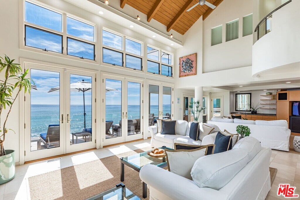 Enjoy the ultimate Malibu lifestyle with stunning unobstructed ocean views from this private architectural beach home located on a sandy section of Malibu Road. Set behind a gate, enter a private courtyard achieved by lush greenery, fountain and immaculate architecture with direct beach access. Inside, the spacious open concept living area opens up to an oceanfront deck made for entertaining with BBQ, an al-fresco dining area and plenty of outdoor lounging. The home boasts floor to ceiling windows, great natural light and high ceilings throughout. In addition to the open concept main living areas the first floor features a guest bedroom and bath. Upper floor features a stunning ocean view primary suite with an oversized balcony to take in the sunsets, as well as a second guest bedroom. Upstairs enclosed loft can be utilized as the 4th bedroom, gym or home office. Ideal close-in location located moments from Nobu, Soho House, shopping and hiking trails. Summer 2026 rate to be $75,000/ Month. MLS# 25592759