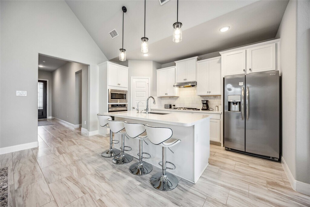 This stunning 2020 Newmark Builders home in Sienna features the desirable one-story "LLANO" floor plan with 3 bedrooms and 2 full baths. It includes SOLAR panels,open-cell foam spray insulation,a tankless water heater,and a programmable thermostat. Located on a corner lot with brick fencing on two sides and no back or left-side neighbors,this home offers extra privacy. The open-concept layout,filled with natural light,enhances the spacious feel of the living,dining,and kitchen areas. The kitchen boasts stainless steel appliances,a farmhouse sink in the island breakfast bar,a gas cooktop,quartz countertops,and a stylish tile backsplash. Tile flooring extends through the main areas,with carpet in the bedrooms. The inviting living room features a "Heatilator" gas fireplace,perfect for cozy nights. Step outside to the covered patio,ideal for grilling and entertaining. Enjoy all the incredible amenities Sienna has to offer—schedule your tour today! MLS# 85081924
