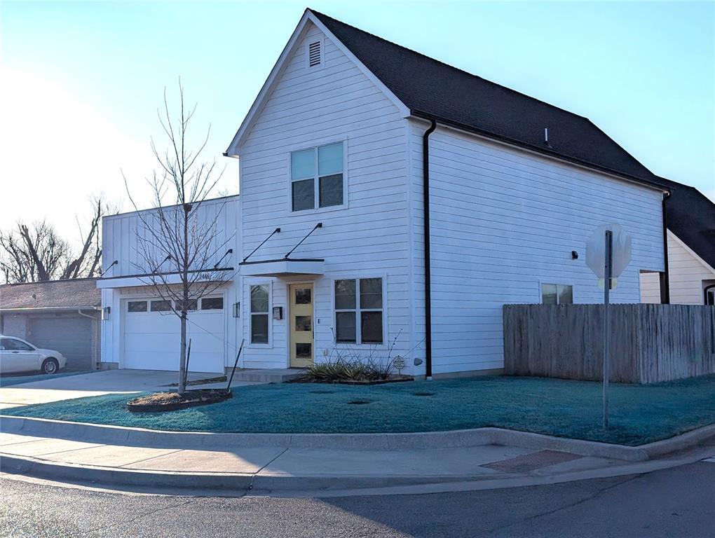 Newer home located near Penn Square Mall and Belle Isle offering three bedrooms and two and a half baths with a well-designed layout. The main level connects the living area,dining space,and kitchen,highlighted by a large center island and a dedicated beverage station with cooler. The primary suite is privately situated and features a walk-in wardrobe with built-in drawer and shoe storage,along with a marble-finished bath complete with a glass-enclosed shower. Upstairs,two additional bedrooms are paired with a versatile study nook and an expansive climate-controlled storage room. Stone countertops are featured throughout,complemented by wood flooring,custom cabinetry,and a full stainless appliance package including refrigerator,range,dishwasher,and microwave drawer. Exterior amenities include automated irrigation for the front and back yards and a cedar privacy fence. Covered porches sit at both the front and rear of the home. An extended driveway and attached two-car garage provide ample parking. Available for immediate occupancy. Schedule your private showing today!
