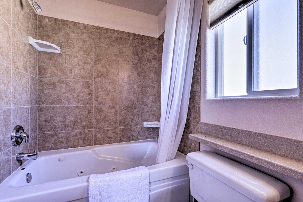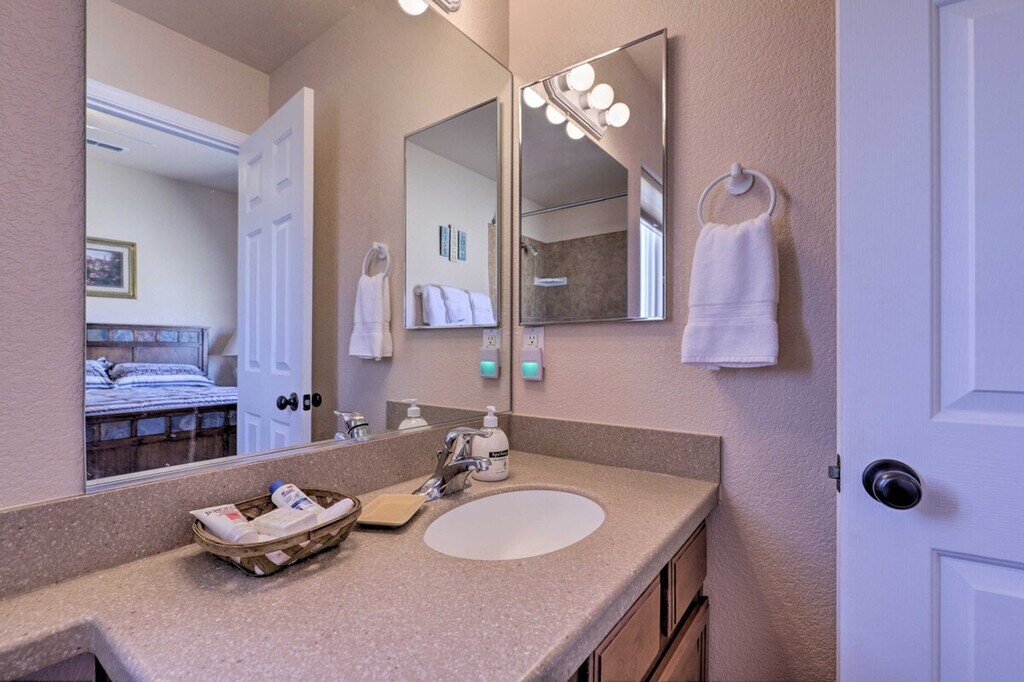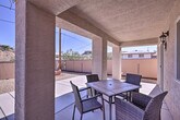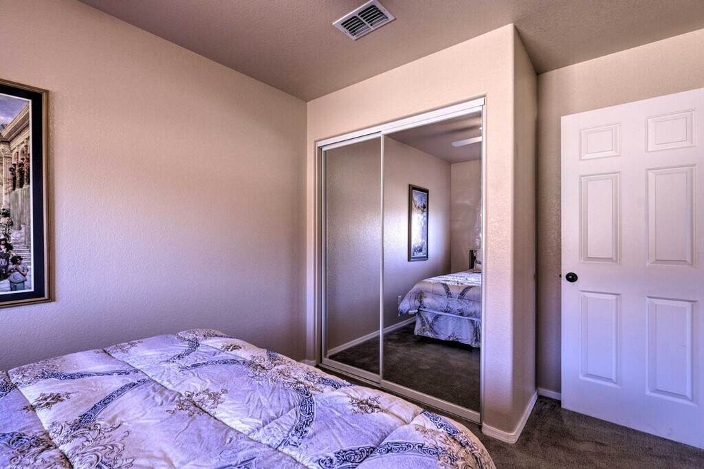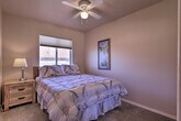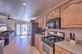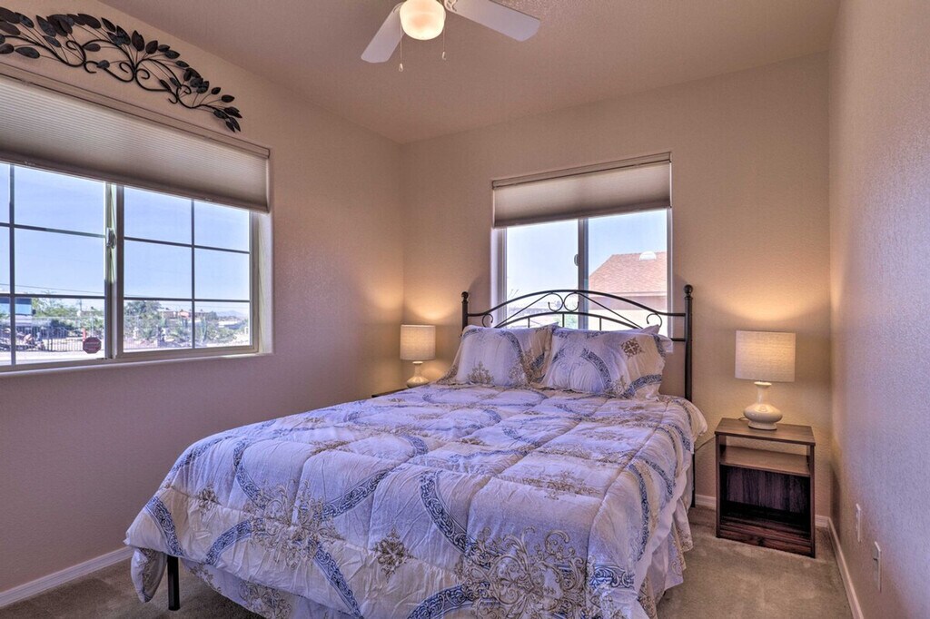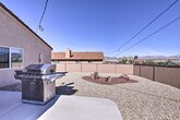 Feel at home in this Bullhead City home, featuring 3 bedrooms and 2 bathrooms. This vacation rental offers all the comforts of home, including a fully equipped kitchen with cooking basics, a drip coffee maker, toaster, electric kettle, full knife set, blender, Crock-Pot, and breakfast bar. Enjoy the smart TV, dining table, gas fireplace, board games, open floor plan, ceiling fans, central air conditioning and heating, linens, towels, complimentary toiletries, washer/dryer, and hair dryer. Enjoy the covered patio with a dining table and gas grill. Parking is available in the garage (1 vehicle), driveway (2 vehicles), and free street parking (first-come, first-served). Experience year-round sunshine, blue skies, and Black Mountain Range views right outside your back door on the covered patio. This home is ideally located within walking distance of water activities and near the area's most popular attractions and sites. Events are welcome. Travelers may need to refill the propane tanks for the grill. [SI]