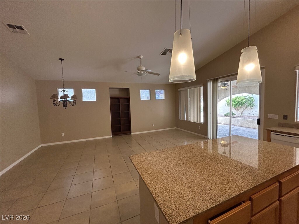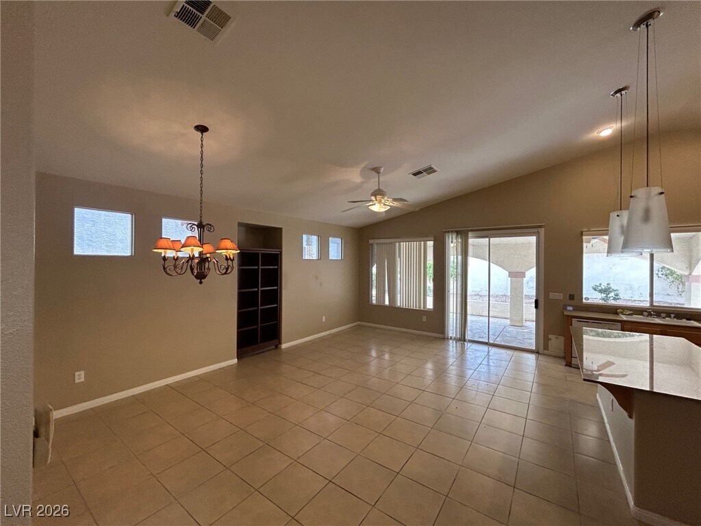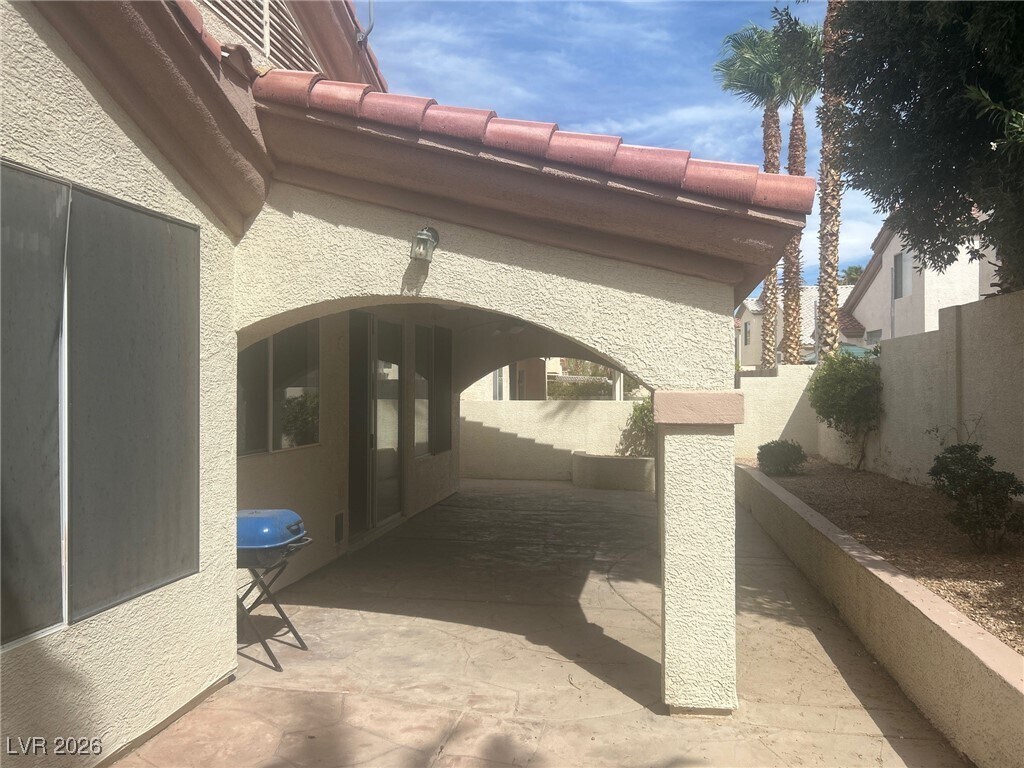 This single-story home in Rhodes Ranch, offers a spacious and modern living experience. With three bedrooms and two bathrooms, it features all-tile floors throughout, providing easy maintenance and a sleek look. The kitchen boasts granite countertops and a large breakfast bar, perfect for casual dining or entertaining. The backyard is designed for convenience, with a fully covered patio that allows for outdoor relaxation regardless of the weather. The property also includes a two-car garage and comes with a washer and dryer for added convenience. This home is ideal for those seeking a low-maintenance lifestyle in a desirable community. Community features resort and lap pool, water slide, jacuzzi, basketball and tennis courts, restaurant and much more!