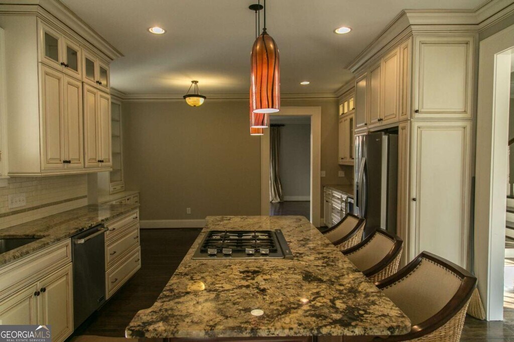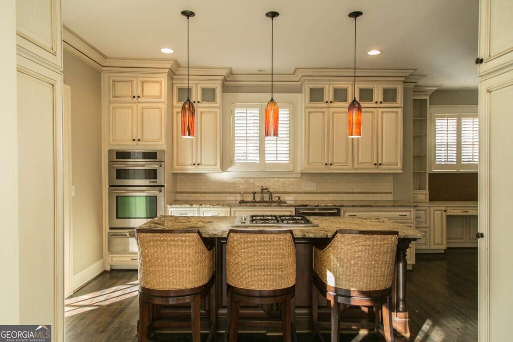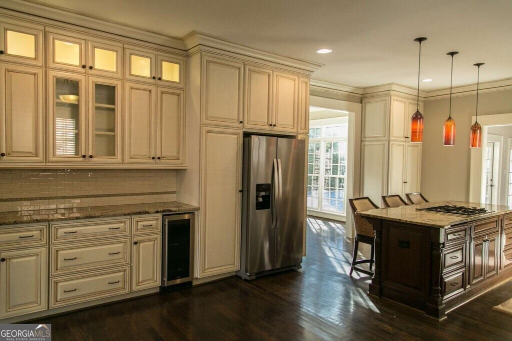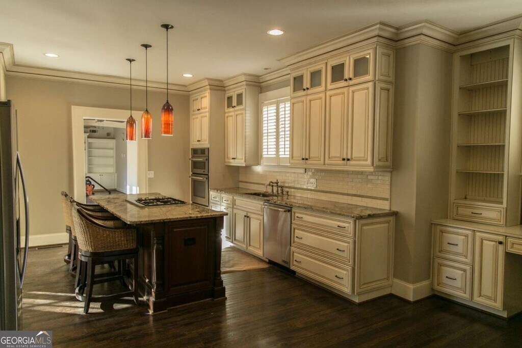 This is a charming brick home with in-ground Gunite pool in sought-after Garden Hills. Walk to Garden Hills community pool, park & playground. It has 4 bedrooms and 3 full bathrooms on the upper level plus 1 half bath on the main level. Also on the main level are the spacious kitchen with granite counters, stainless steel appliances and wine cooler, family room with fireplace, separate living room with built-ins plus French doors that lead out into the fenced back yard with brick patio, outdoor fireplace & pool. The separate dining room also has a decorative fireplace. There is a laundry closet off the kitchen and rear stairs to the upper level. Other features include a covered front porch, 9' ceilings, gorgeous moldings, trim & light fixtures throughout and a 3 car garage.