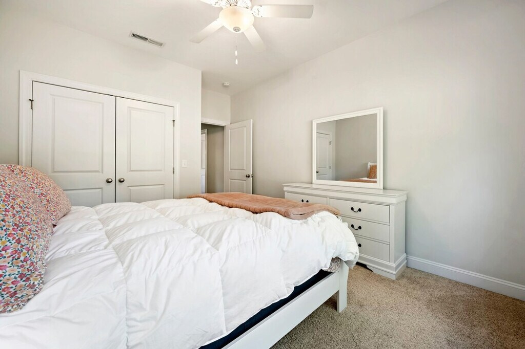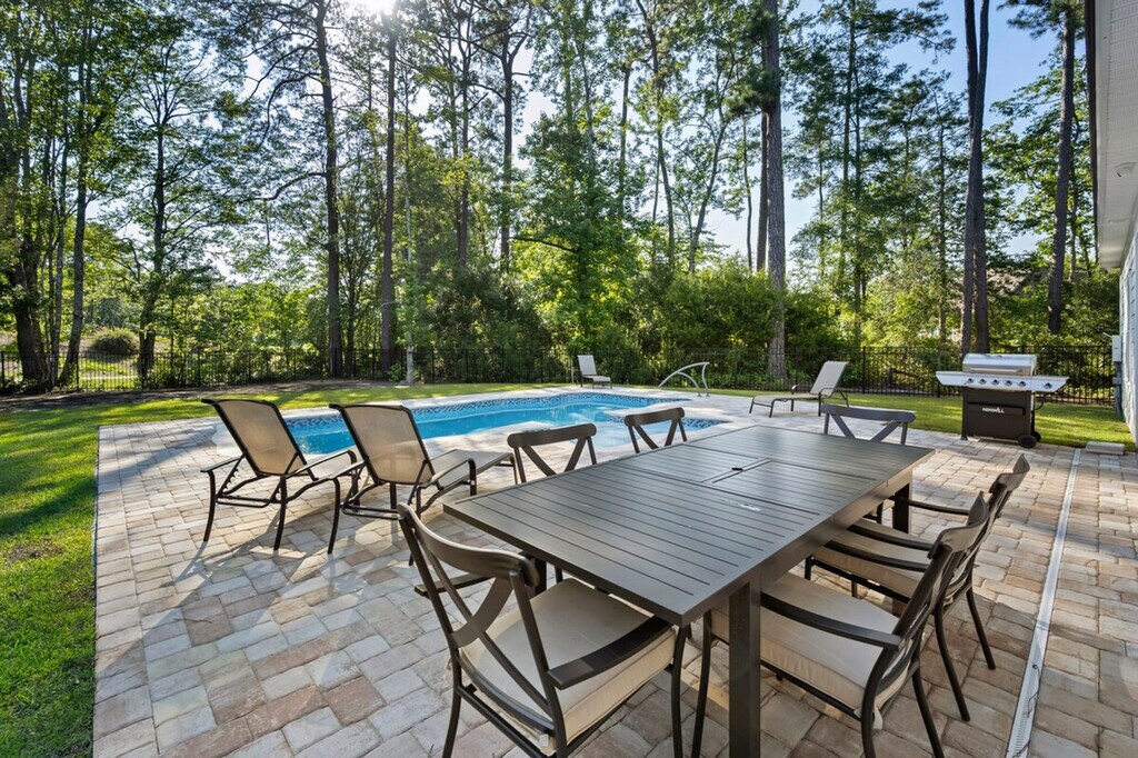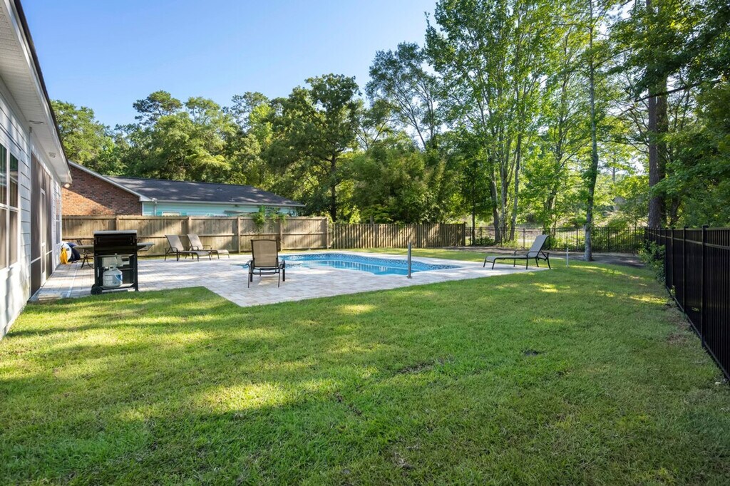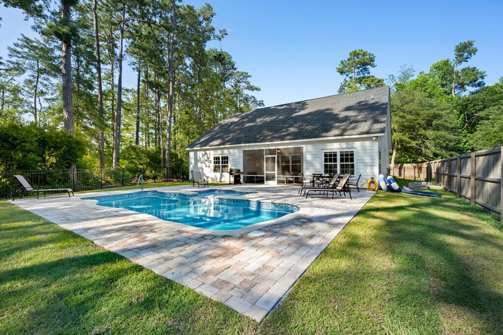 Welcome to 34 Pipedown Way, where you can feel at home in this spacious house featuring a private, fenced-in pool, perfect for relaxing after a day on the course or beach. Inside, you'll find four generously sized bedrooms, including one with a king-size bed and three with queen beds, along with three full baths, providing all the amenities you need for an enjoyable stay. The house offers a large-screen TV, ideal for catching the game, and a screened porch with views of the 4th green at Heritage Club. Unwind with a drink, fire up the grill, or challenge friends to a friendly game of ping pong. The property includes a private, fenced-in pool for your enjoyment. Located near the Heritage Club, this home provides easy access to golf courses and beaches, making it a perfect spot for leisure and relaxation. A laptop computer is not included. [SI]