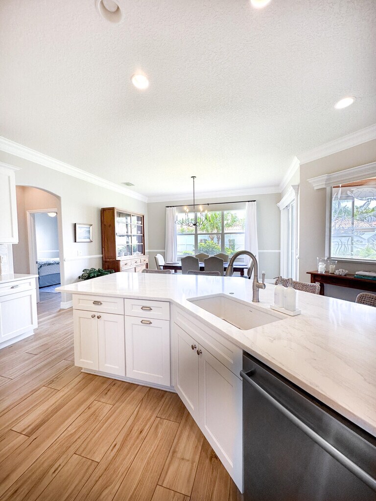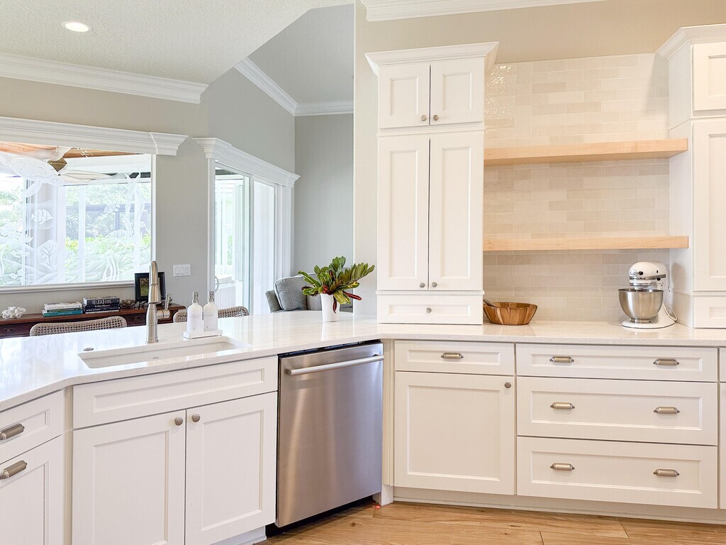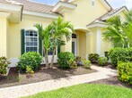 An elegant,turnkey coastal home located in a pristine,gated waterfront community with deeded ocean access and river pier. Featuring a newly remodeled kitchen with white quartz counter,new cabinets with soft close drawers,new fridge and dishwasher. Brand new glass sliding doors leading to a beautiful lanai,screened in,for year round enjoyment of tropical outdoor space. Meticulous interior details such as high end wood-like porcelain tile throughout,complete with impressive crown molding and trim,and soaring ceiling ranging 10 to 11 feet. Move-in ready with freshly painted interior,surround sound system,accordion storm shutters,friendly neighbors and more. Paradise awaits!
