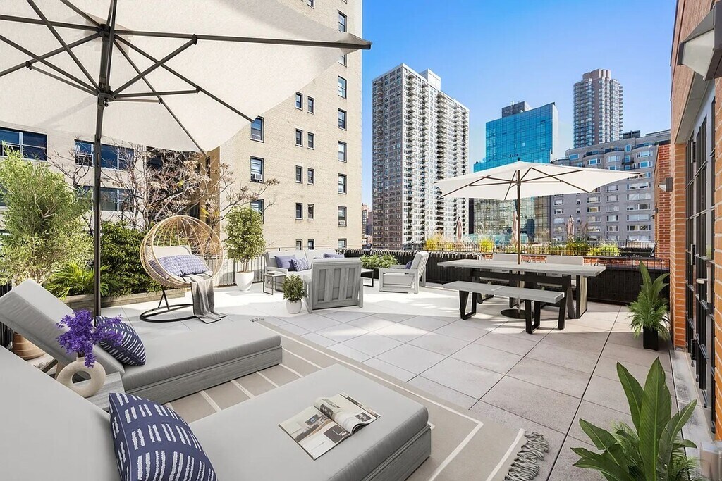 DUPLEX PENTHOUSE PHD WITH SUN-FILLED HOME OFFICE + 925 sf PRIVATE TERRACE – AVAILABLE IMMEDIATELY Every room in this thoughtfully designed duplex 3-bedroom, 3-bath penthouse (configurable as 4 bedrooms) enjoys abundant natural light through oversized, double-glazed casement windows. The apartment features 9’6” ceilings on the main level and 11’ ceilings upstairs, with solid white oak floors throughout. The generous entry foyer opens to a 25-foot living/dining room. The separate galley PoggenPohl kitchen includes Caesarstone countertops, Liebherr and Bosch appliances, and a vented range hood. The tranquil, corner primary bedroom has three large windows, easily fits a king-size bed, and includes a spacious walk-in closet. The en-suite windowed bath features a custom marble mosaic floor, glass-enclosed shower, a double walnut vanity, mirrored medicine cabinets and built-in storage. The two secondary bedrooms are generously sized, share a full bath with marble floors and a Waterworks cast iron tub, and can be closed off from the main living space via solid wood pocket doors for privacy. Upstairs, an expansive home office – open to the staircase and surrounded by windows – includes a full 3-piece bath and opens directly via a full wall of floor-to-ceiling casement doors to a 925 sf private terrace equipped with electric and water. Ideal as a dedicated work-from-home office with seamless indoor-outdoor flow and an airy feel, it can easily convert to a fourth bedroom, family room, library or guest suite. In-unit washer and vented dryer. 245 East 78th Street is a boutique, owner-managed building fully rebuilt in 2018 behind its restored prewar façade. Modern systems include multi-zone heating and cooling, vented laundry, and custom windows. Building amenities include a full-time doorman, landscaped roof terrace, fitness center with adjoining courtyard, package room, bike room, and private storage. Pets welcome.