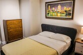 Experience Mid-Century modern living in downtown Rochester at Spectra in Sibley Square. This one-bedroom, one-bath apartment boasts a bright interior with large windows, a spacious 30' living area including an office and dining area, and a fully equipped galley kitchen. High-quality finishes, gray-washed laminate floors, ample closet space, and an in-unit washer and dryer enhance the elegance of this stylish unit. Welcome to your luxurious mid-century modern one-bedroom, one-bath corporate rental unit in historic Sibley Square in downtown Rochester. As you step into this exquisite space, the large galley kitchen's stylish sophistication greets you, setting the tone for the impeccable design and attention to detail throughout. The kitchen area boasts sleek cabinetry, modern appliances, and ample counter space, inviting you to unleash your culinary creativity in style. A small marble-topped tulip table with seating for two adds a touch of elegance and offers a cozy spot for intimate meals or morning coffee. Beyond the kitchen, the spacious living room awaits. It features tasteful furnishings and large windows that flood the space with natural light, creating an inviting ambiance for relaxation and entertainment. The modern bath is adjacent to the living room, offering a luxurious shower and elegant finishes for a spa-like experience. The bedroom provides a serene sanctuary with plush bedding and ample storage space, ensuring a restful night's sleep every night. A small office area also offers the perfect space to focus and easily tackle work tasks. Convenience is at your fingertips with a washer-dryer unit discreetly tucked away, ensuring a hassle-free and efficient laundry day. Parking is available for a monthly fee, providing added convenience for residents with vehicles. The unit is located at Sibley Square, formerly a department store converted into a multi-use building. Sibley Square is directly in the center of the City of Rochester and within walking distance to Eastman School of Music, restaurants, Eastman Theater, coffee shops, and more. It is also within minutes from the Genesee Riverway Trail, The Strong Museum, Memorial Art Gallery, Eastman Theatre, and Gibbs Street. Sibley Square exposes you to all of Rochester's art, history, culture, and natural beauty. The comfort or rights of neighbors must not be interfered with, meaning that annoying sounds, odors, and lights are not allowed, including loud music, arguments, frequent and/or late-night invitees, unruly or threatening behavior, and other disturbances in the unit or anywhere on the premises. Parties are not allowed on the premises. Quiet hours are from 8 pm to 8 am. Smoking is prohibited anywhere inside the unit or on the property. The guest must return all keys, fobs, or garage access cards upon leaving the rental. The guest is responsible for compliance with all trash recycling regulations. No parking on premises except in permitted areas. The guest must notify Management immediately upon discovering water leaks in the unit, including a toilet or faucet running or dripping, clogged drains, or cracked or leaking pipes. The guest must maintain clean and sanitary conditions of the unit. Long-term guests will supply and install all light bulbs for the unit but will leave all installed light bulbs when vacating the unit. Drinks should not be put on the surface of furniture. Coasters are provided to prevent damage. If any furniture is moved, it must be returned to its original location. Management prefers not to move the furniture. No additional people will stay in the unit than the number reserved without notification and approval. The guest must complete a Property Condition form within 48 hours of arrival. The guest must pay all fees and expenses for any repairs or services due to the guest’s fault or actions. If any damage is found in the unit, the guest will be expected to cover replacement costs. Because of our strict quality control standards, guests are not to replace items themselves. In addition to payments for damaged items, a 20% administrative fee will be charged. Any damages will be deducted from the security deposit. No pets without written permission. The minimum age to rent is 25. A small office area offers the perfect space to focus and easily tackle work tasks. [SI]