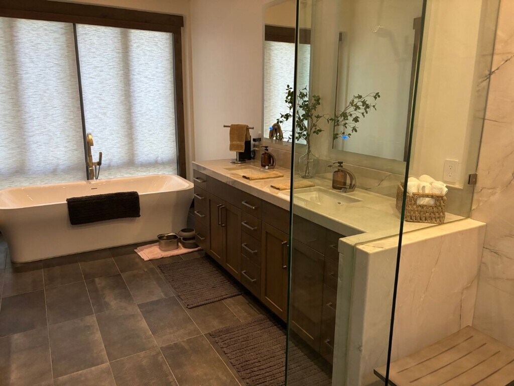 5 bedrooms (all en suite), 7 bathrooms (5 full baths + 2 half baths), 3 car garage plus a heated driveway for guests. The home has over 5600 sq. ft. of living space and sits on a beautifully landscaped .97 of an acre lot in a gated neighborhood of Incline Village, Nevada. Outdoor living space, just off of the great room, has a covered seating area, a fire feature, the BBQ and built-in space heaters to fend off the cool evening air. The living area features vaulted beamed ceilings, a large gas fireplace, and mounted TV. Chef's will love the spacious kitchen with top of the line appliances and prep area needed for large family gatherings and there is dinner seating for 20+ if needed. The quartzite waterfall island features a second sink, a second dishwasher, and a warming drawer making dinner prep a breeze. Available January through May 2026