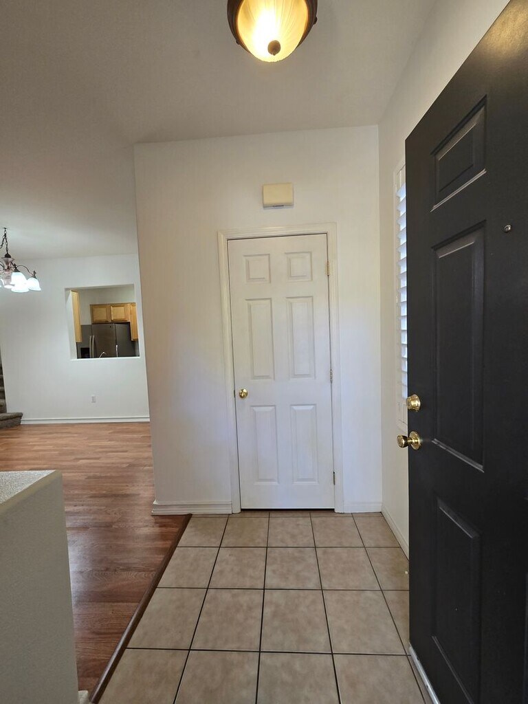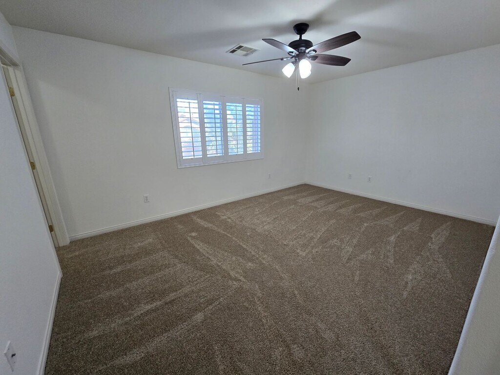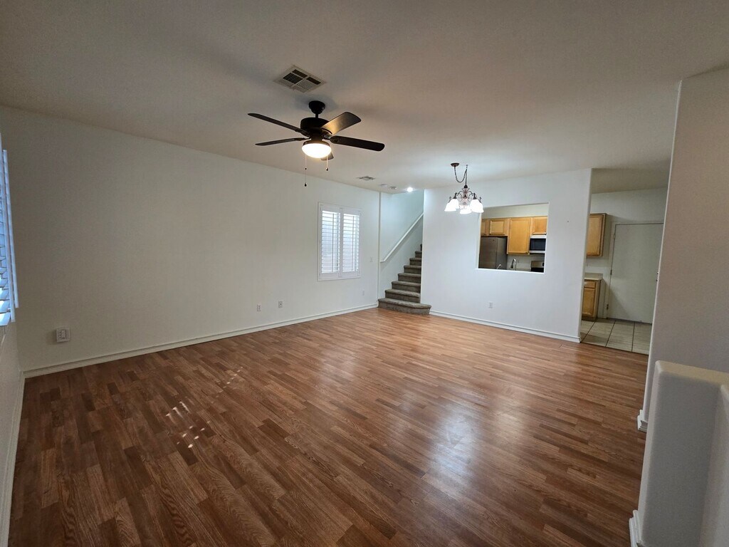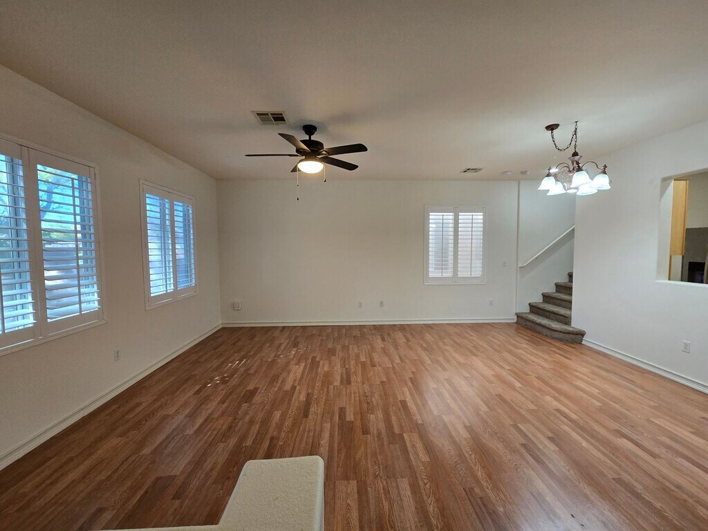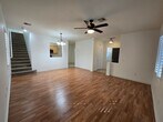 Step into this fabulous two-story home featuring 3 spacious bedrooms, 2.5 bathrooms, and a 2-car garage. The interior showcases beautiful laminate wood-like flooring in the main living areas, tile in the wet areas, and cozy carpet up the stairs and into the bedrooms. Venetian shutters are installed throughout, adding a touch of elegance and privacy. The kitchen is equipped with granite countertops and stainless steel appliances, perfect for both everyday living and entertaining. You'll also find ceiling fans throughout the home for added comfort, and the convenience of an upstairs washer and dryer. Step outside to a charming courtyard with mature landscaping—an ideal spot to enjoy your morning coffee or host guests in a peaceful setting. Please note that the rent includes a $100/Mo fee for the Sewer, Trash, and the Resident Benefit Packet (RBP). Please call with any questions.