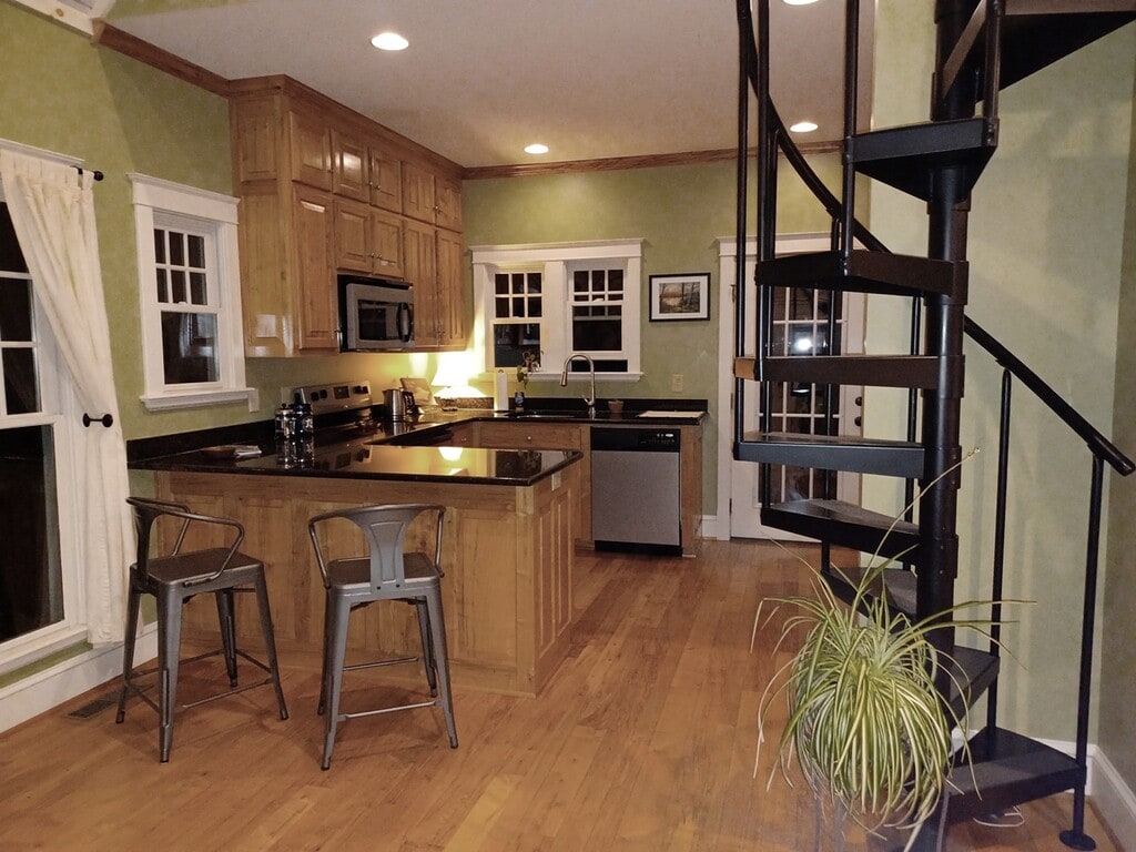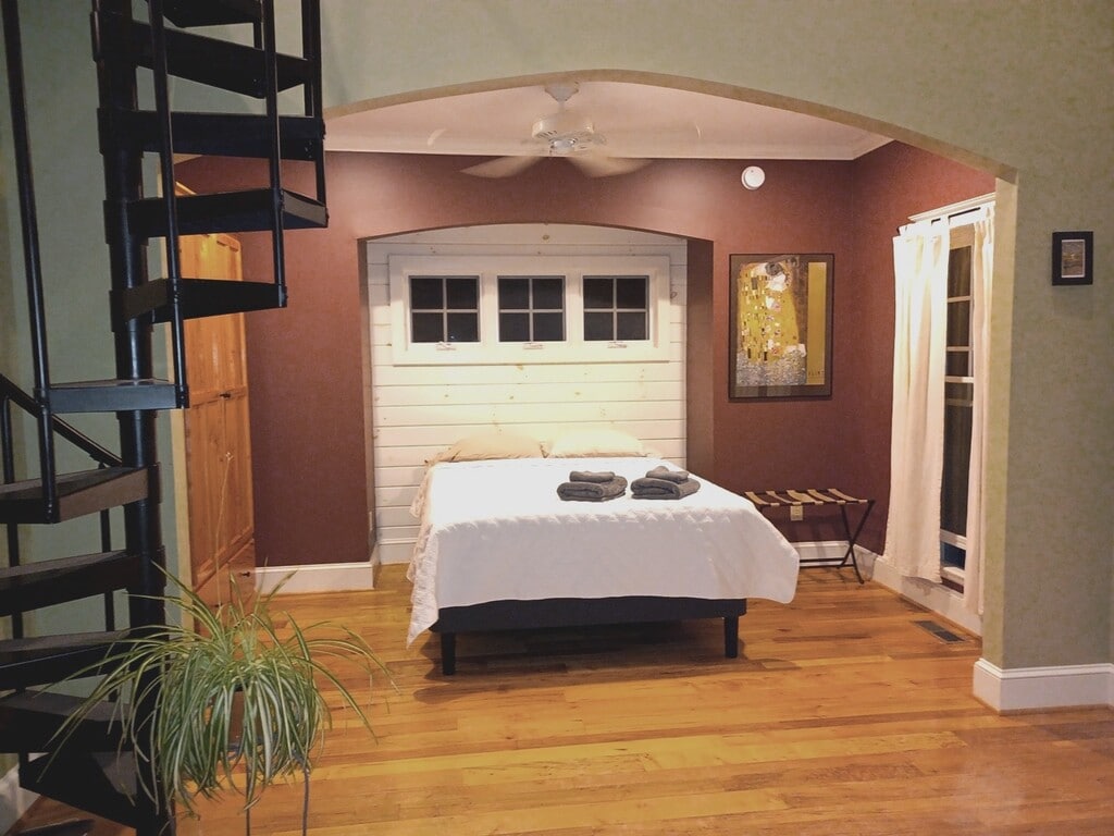 Unique, quality cottage in Afton available for a single individual. This is a studio apartment in that the living room/kitchen/bedroom/loft are all open to each other. Use the loft with the spiral staircase as your sleeping area, or locate your bed on the main level and use the loft as your office! The woodwork, the cabinetry, the stone work in this cottage is fabulous! The views are amazing from the deck, and as a bonus, there is a lower level (access only from outside) where there is another finished room, half bath, and laundry. This lower level space could be used for a guest, or as a home office. Wood floors, granite counters, stainless appliances, wood stove surrounded by stone, deck with mountain views, and free access to walking path, located about 25 min from downtown Charlottesville, west off Rt 151. Utilities included in rent are water/sewer, lawn maintenance. Tenant pays electricity, internet and trash. One year lease. Owners are not considering pets! Non-smoking. Good credit required and income of at least $4800/month. Owner prefers single occupancy, as the cottage is fairly close to his home and he wants to keep traffic and activity to a minimum.