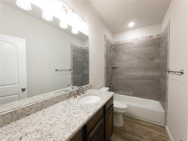 This beautifully appointed town-home offers contemporary living throughout its two-bedroom, two-bathroom layout. The open-concept living and dining areas create an ideal space for both daily life and entertaining, while a dedicated laundry room adds convenience to your routine. The home showcases quality finishes including elegant granite countertops, stylish tile work, and comfortable carpeting in select areas. The primary suite serves as a private retreat, featuring dual vanity sinks, a separate shower, and an expansive walk-in closet for all your storage needs. The second bedroom includes a relaxing tub, perfect for guests or family. Move-in ready with all major appliances included—refrigerator, washer, and dryer come with the home. The attached two-car garage provides secure parking and additional storage, while the private fenced backyard offers outdoor space for relaxation or play. As an added benefit, the HOA takes care of lawn maintenance, allowing you more time to enjoy your new home.