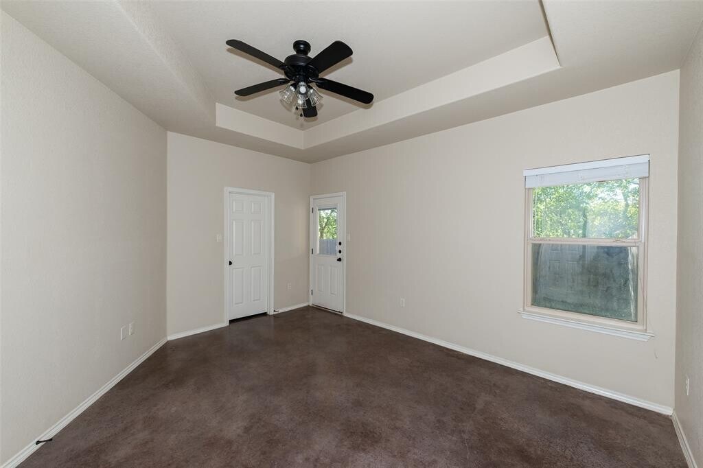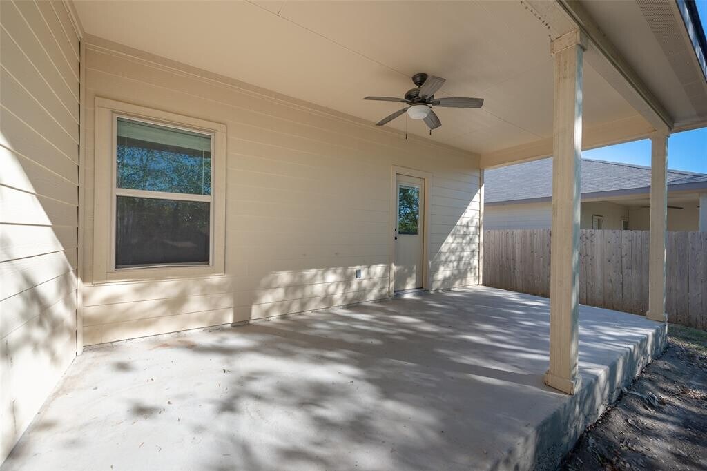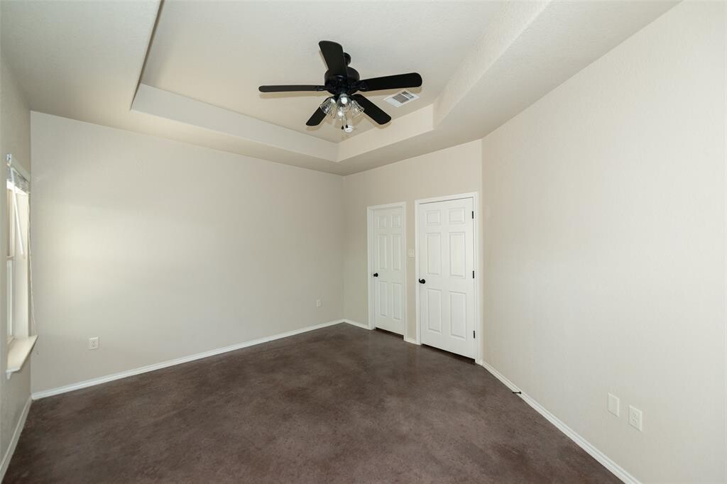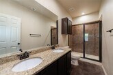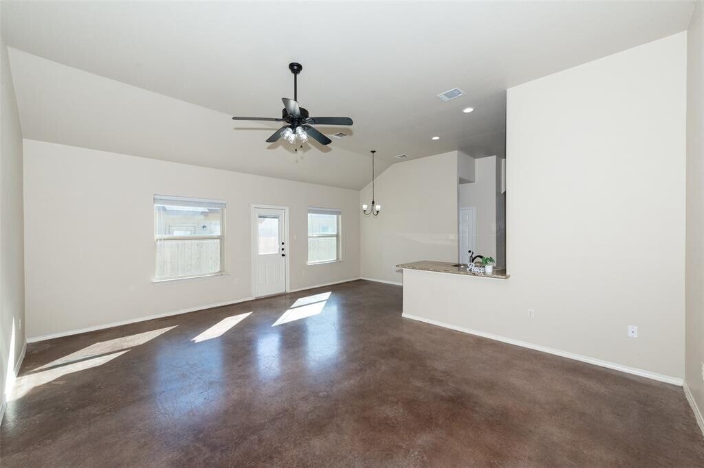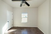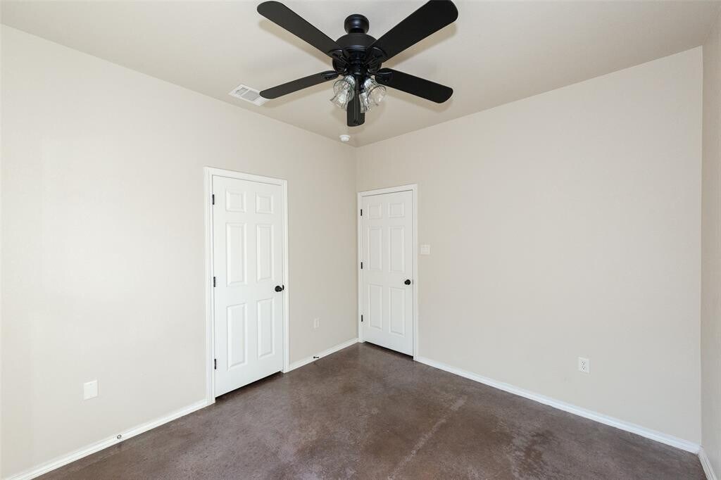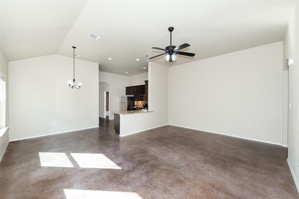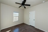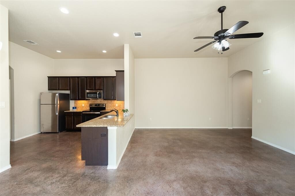Newer-construction duplex offering refined finishes and exceptional functionality. This residence features a full 2-car garage, private fenced yard, and front and rear sprinkler systems. The open-concept layout includes generous living areas with high ceilings, granite countertops, stained concrete flooring, recessed lighting, and ceiling fans in every room. Window blinds are installed throughout for added comfort and privacy. A refrigerator is included, and the private interior laundry room provides additional convenience. The property is move-in ready and located within a well-maintained community.