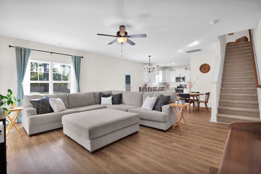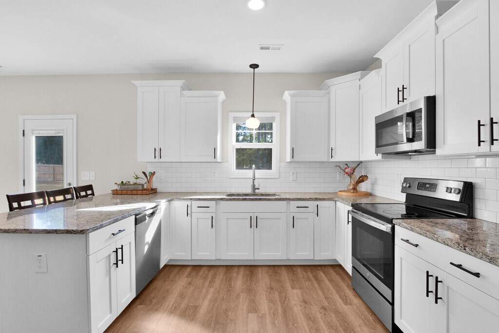 Enjoy peaceful living in this spacious 2,000 sq ft, 4-bedroom, 2.5-bath single-family home located in a quiet, family-friendly neighborhood of Raeford, North Carolina—just minutes from the Carolina Horse Park and 15 minutes from Camp Mackall. Step into a bright, open-concept living area designed for comfort and connection. The generous living room flows seamlessly into the dining area and modern kitchen, featuring granite countertops, stainless steel appliances, and ample counter space—perfect for family gatherings or entertaining friends. Upstairs, the primary suite offers a relaxing escape with a private bath and walk-in closet, while three additional bedrooms provide plenty of room for family, guests, or an office. Outside, unwind in the large, fenced-in backyard with a lush lawn and spacious concrete pad—great for barbecues or playtime. The epoxy-finished garage completes this well-kept home. A perfect balance of space, serenity, and modern comfort awaits.