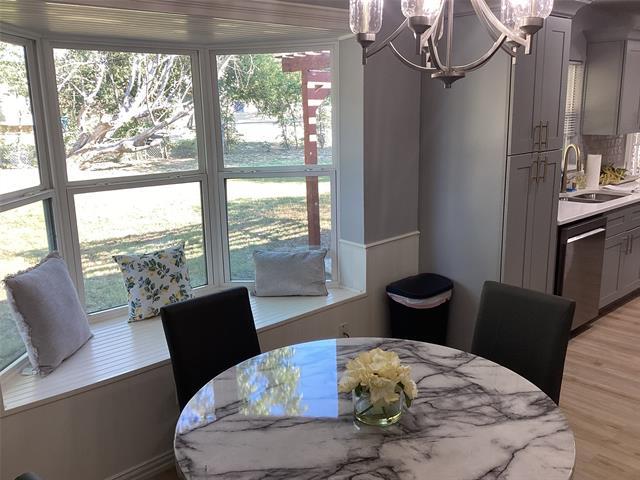 Gorgeously Fully Furnished Home for rent! Step into a world of elegance and timeless charm with this meticulously renovated 3-bedroom, 2-bath home. Every corner of this property has been thoughtfully updated to create a space that offers both comfort and style from the recessed lighting that illuminates the home to the stunning luxury vinyl plank floors that run throughout. The walk-in shower in the master bath exudes spa-like tranquility, and accent wall adds a refined flair to the home’s aesthetic. The gold fixtures add a touch of luxury throughout, while the French doors effortlessly lead you to a spacious backyard, perfect for outdoor gatherings or quiet moments of reflection. The kitchen is equipped with brand new gleaming stainless steel appliances, new cabinets with crown molding, and a beautiful backsplash. In the dining room you will be met with a striking bay window offering beauty and functionality with its cozy window seat, inviting you to relax and soak in the views Enjoy peace of mind with all-new windows, a newer roof, and a foundation backed by a lifetime warranty. The 2-car garage offers storage, while the covered porch with a pergola creates an enchanting space to unwind. Come experience the perfect blend of beauty, functionality, and charm. We are open to rent to own programs such as Dream America