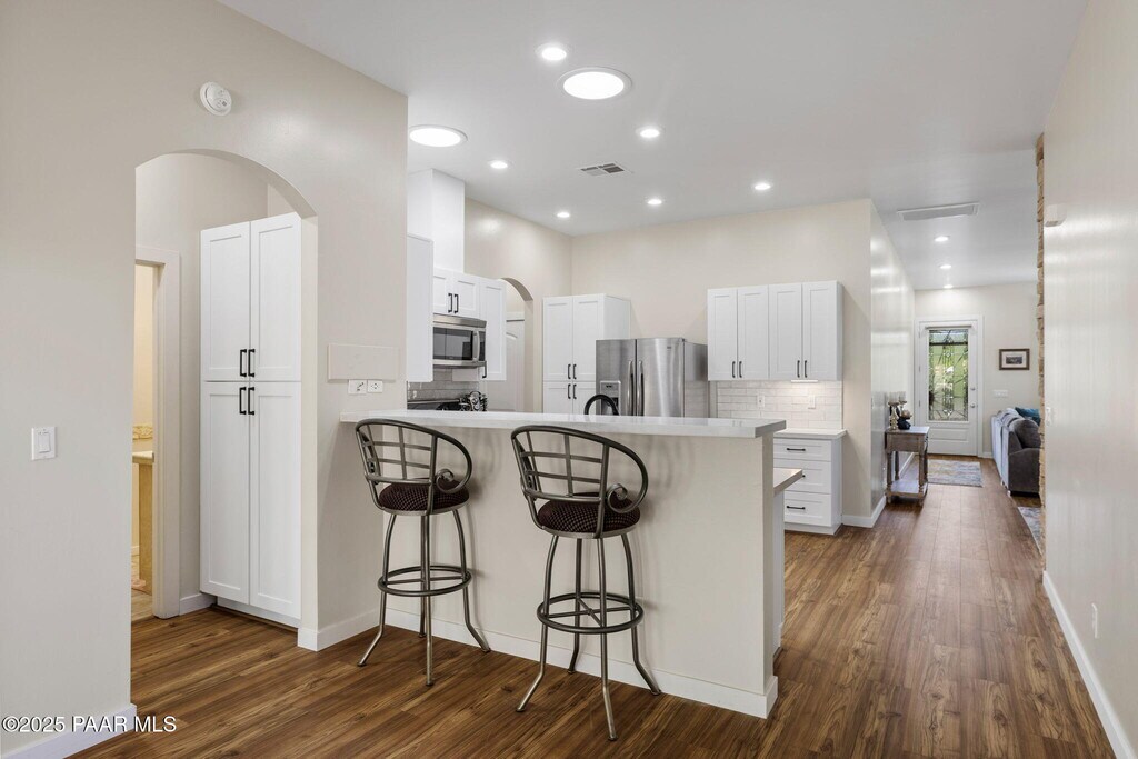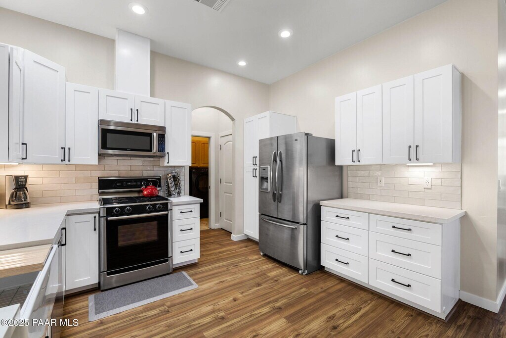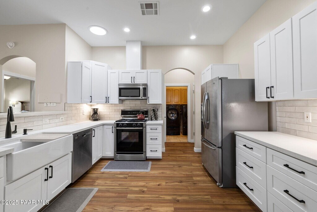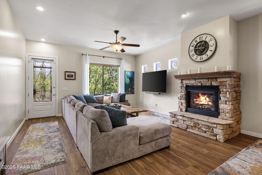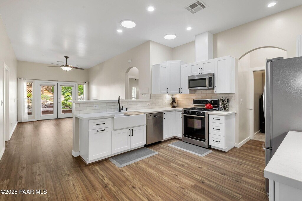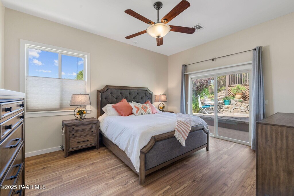 This beautifully furnished home is perfectly located within walking distance of downtown Prescott,offering both convenience and charm. The upper level features two spacious bedrooms and two full bathrooms,with an open floor plan that includes a newly updated kitchen,fresh flooring,and modern paint throughout. Outdoor living is just as inviting,with a front deck overlooking scenic views and a backyard gazebo where you can relax to the sounds of a tranquil water feature while enjoying views of Granite Mountain.The lower level is a private guest retreat complete with its own front patio surrounded by blooming roses. Inside,you'll find a queen-size bed,kitchenette,full bathroom,and large closet--an ideal space for in-laws,guests,or returning adult children.Parking is never an issue with a two-car garage,driveway,and additional parking pad dedicated to the guest quarters. Landscaping services are included in the rent,making it easy to simply move in and enjoy.Owner is a licensed real estate broker in the state of Arizona