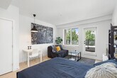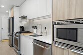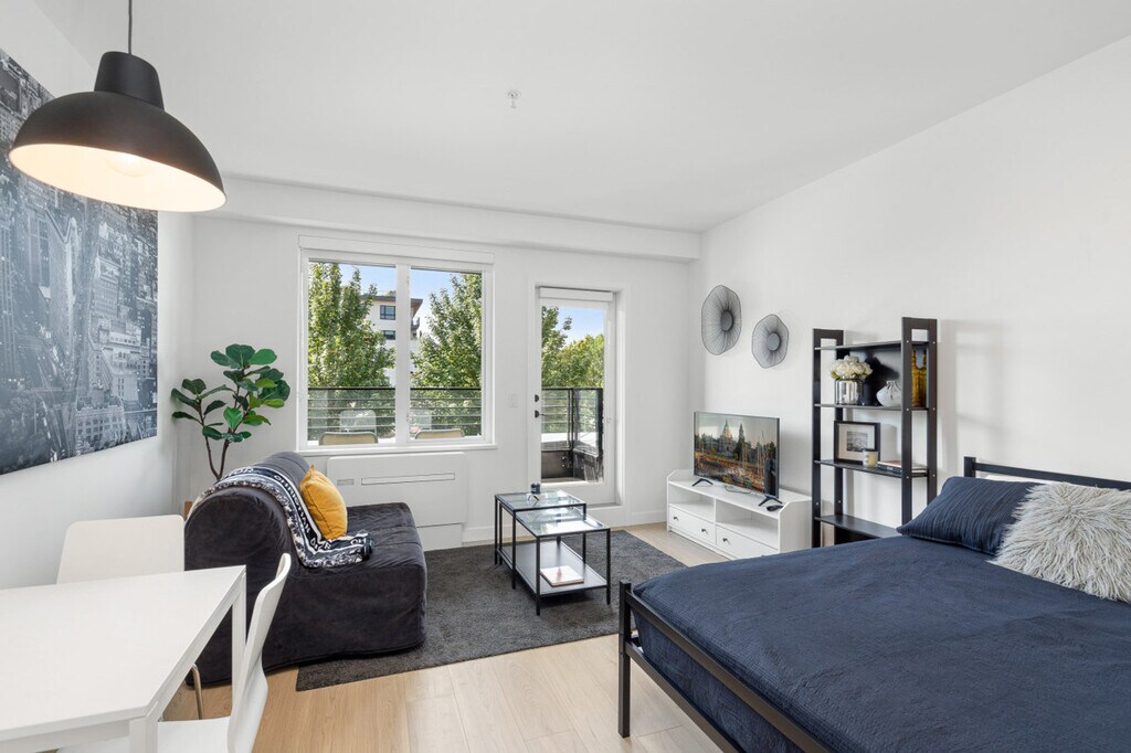 Welcome to this modern studio unit, where you can feel at home with its private balcony and ensuite laundry. This apartment is perfect for mid-term stays and offers convenient access to local shops, parks, and transit. The studio features a full kitchen and a compact office nook with a desk and chair, providing a comfortable and functional living space. Enjoy access to the in-building gym and lounge, while street parking is available for your convenience. Located with convenient access to local shops, parks, and transit, this studio ensures you are never far from what you need. Smoking, parties, and events are not allowed, and noise should be kept to a minimum after 10 PM. [SI]