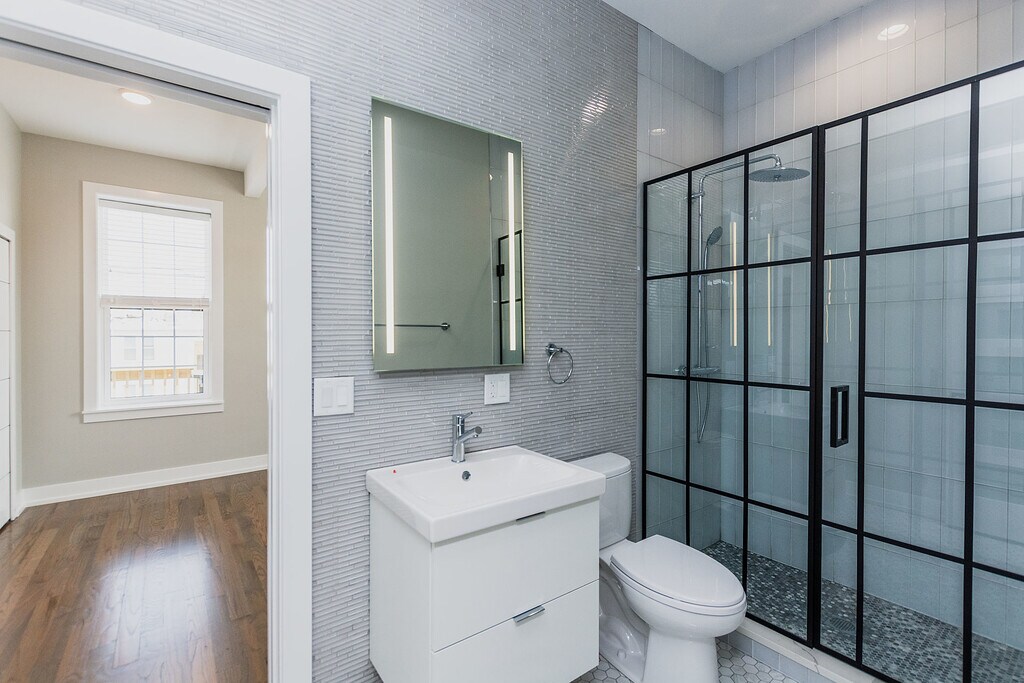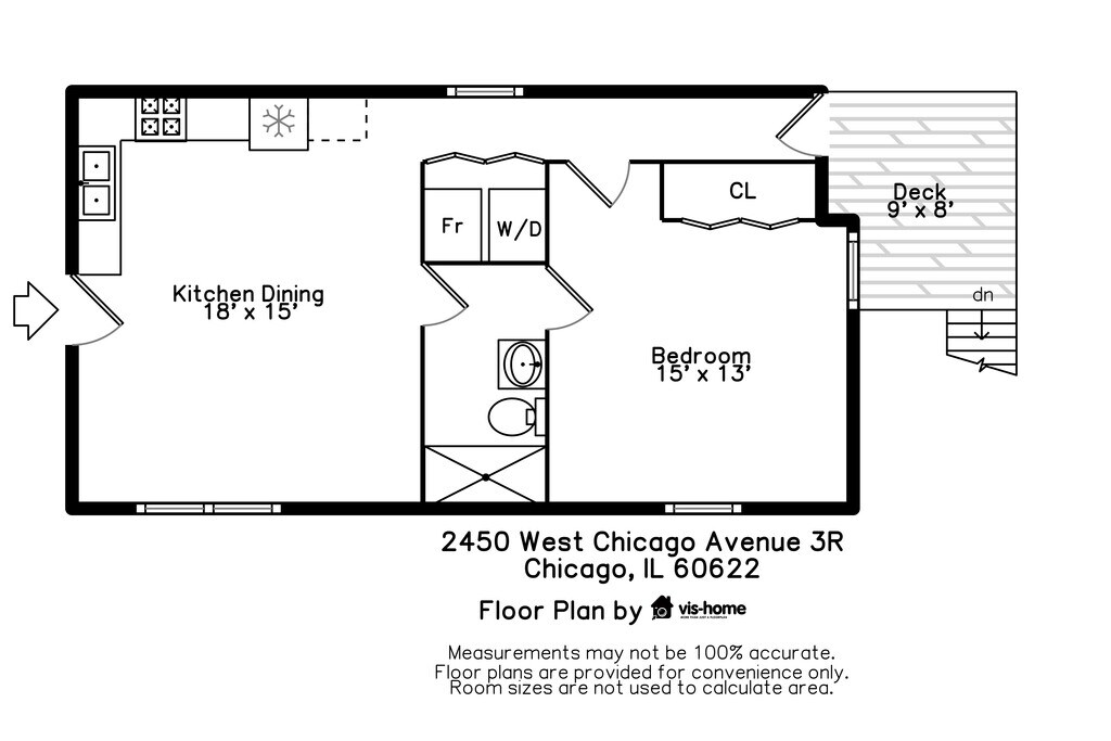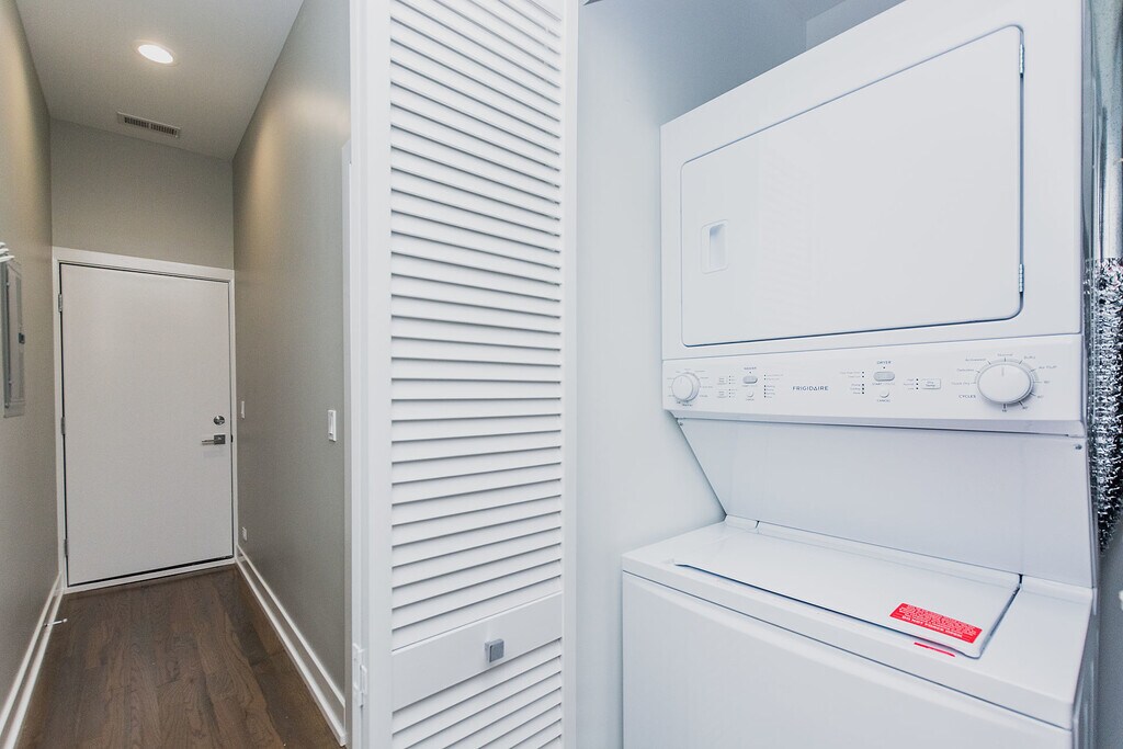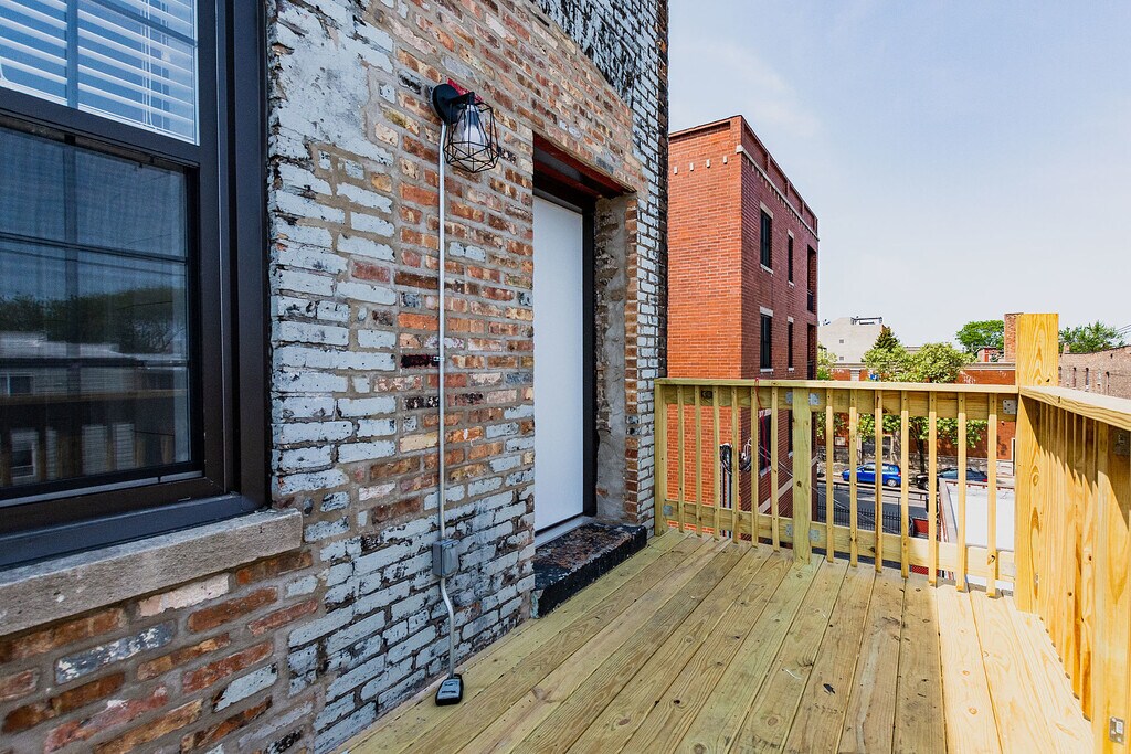 Fully Renovated, High-End 1 Bed / 1 Bath | Ukrainian Village | 650 ft² Experience modern living in this beautifully renovated 1-bedroom, 1-bathroom rear unit located in the heart of Ukrainian Village in Chicago. Meticulously updated in 2020 with premium finishes, this 650-square-foot home is part of an intimate 6-unit building and offers an abundance of natural light, stunning hardwood floors throughout, and a spacious open-concept layout. The living area flows effortlessly into a contemporary kitchen featuring sleek cabinetry, quartz countertops, a tiled backsplash, under-cabinet lighting, and stainless steel appliances—including a built-in microwave, dishwasher, and garbage disposal. The oversized, king-sized bedroom (15' x 13') includes custom closets and a private en suite bathroom, outfitted with stylish tile flooring, a floating vanity, an LED-lit mirror, and high-end fixtures. Additional upgrades include a smart digital thermostat for year-round comfort, water detectors for added peace of mind, and elegant, energy-efficient recessed LED lighting throughout. Central heating and cooling, along with an in-unit washer and dryer, provide convenience and comfort. A rear deck offers a peaceful outdoor space for relaxing. **Photos may represent a similar unit in the building**