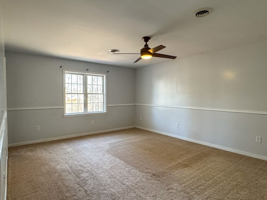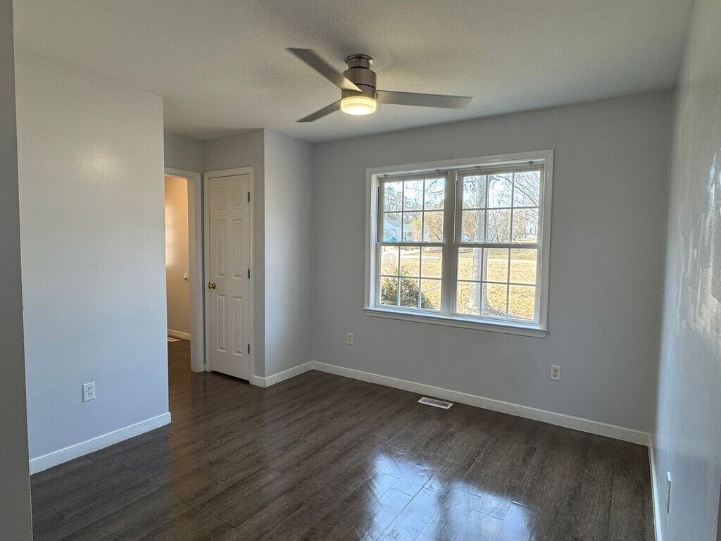 Amazing like-new two story contemporary 4 bedroom, 2.5 bathroom home sits on over half an acre of land and on a corner lot; welcoming front porch enters into the foyer; the first level offers maintenance free vinyl flooring, a dining area open to the kitchen equipped with stainless steel refrigerator, stove, a dishwasher and microwave; very spacious den/family room leads to the rear deck and private yard with a view of the neighborhood pond; all bedrooms are located upstairs along with the laundry room equipped with a dryer; the primary bedroom has a large walk in closet and attached full bath with double vanity sinks & dressing area separate from the tub/shower. The interior has been recently painted, and has detailed chair rail throughout; The fourth bedroom above the garage is perfect for an office/study or nursery. This home comes with a two car front entry garage & direct access into the foyer; 2 zone central air & heat systems with gas heat on first level and gas hot water. No Pets, No smoking inside house, No Housing Choice Vouchers per VA Code 36-96.2. Dryer and microwave are for convenience use only. Mounting TVs or hanging items that require nails, screws, anchors, or drilling into the walls is not permitted. Only adhesive products such as Command™ strips may be used for hanging décor. Home will be available for move-in approximately two (2) weeks after the security deposit is received. Rent includes a Resident Benefit Package. Ask for more details.