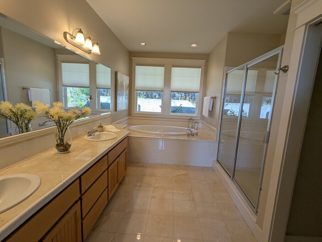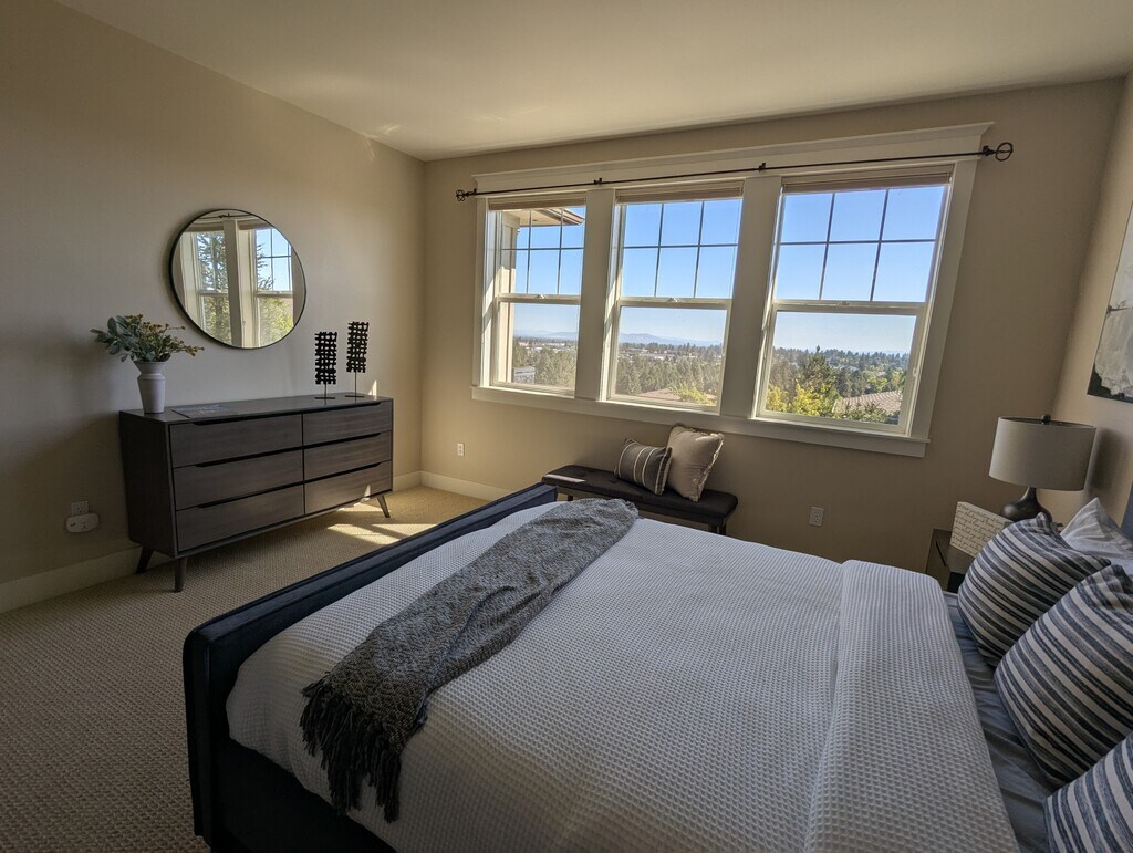 Beautifully stunning home in extremely desirable location with incredible views of the city, Pilot Butte and the river, plus easy access to the river trail. Two story (Plus) home with an open floor plan sits on landscaped 1/4 acre lot. Easy to work in kitchen has all appliances, of course. There's a primary suite downstairs and another upstairs with a cozy gas fireplace and as master bath that exudes relaxation in elegant style with a jetted tub and tiled shower. Considered a two story home, but there is an additional level for the upstairs bedrooms. Exudes total class and it's close to downtown yet feels like it's on a mountain top. Expansive front deck gives you privacy while you enjoy the views. Large laundry room with lots of working space, storage and a sink is located on first floor. Very private deck in the back with natural landscaping. Oversized 2 car garage plus deeded on-street parking and plenty of storage space. Central A/C. Gas forced air heat. All utilities are tenant responsibility. Pictures and words don't do this elegant home justice. You've got to see it. Apply at: www.hummingbirdproperty Click on Apply Now and carefully read the criteria to self determine if you would qualify for approval. NOTE: Applications must be on file before viewings can be scheduled. No fees are assessed until you are ready to be processed. $50.00 per adult over 18. Security Deposit subject to change.