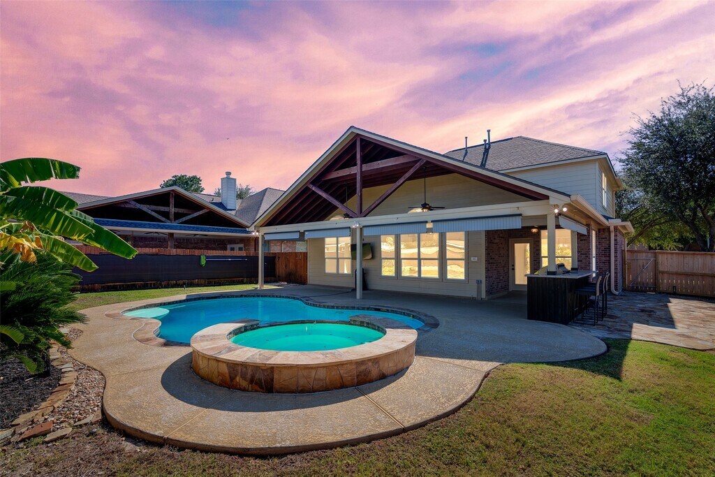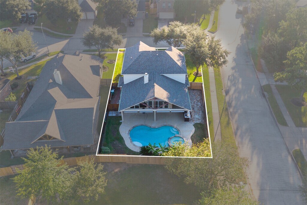 Meticulously maintained 4 BD / 2.1 BA home in the highly sought-after Falcon Ranch community! Situated on a corner lot in a quiet cul-de-sac,this freshly painted home offers a bright,open layout with numerous updates throughout (see itemized list for full details). Enjoy your private backyard oasis featuring a sparkling pool,relaxing spa,mosquito misting system,and an outdoor kitchen with mini fridge and extended patio—perfect for entertaining year-round. Inside,the home features an updated kitchen,stylish bathrooms,and hardwood flooring in the primary suite. Conveniently located just one street from the bus stop and only a 4-minute drive to Kroger and the Grand Parkway,with top-rated Katy ISD schools,shopping,and dining nearby. Pride of ownership shows throughout this move-in-ready home! MLS# 48238659