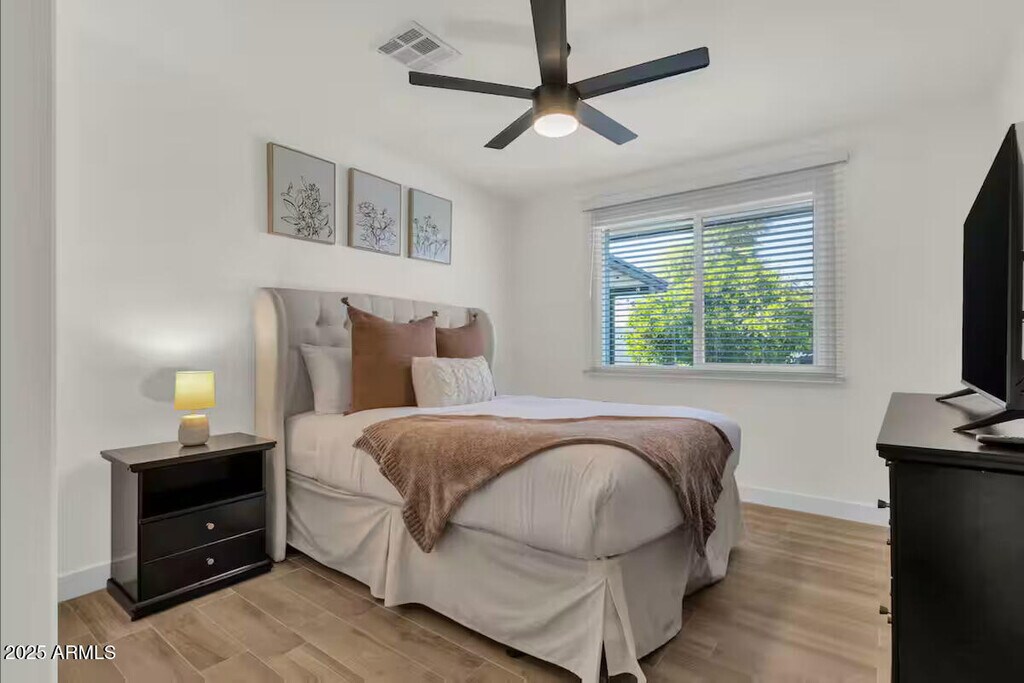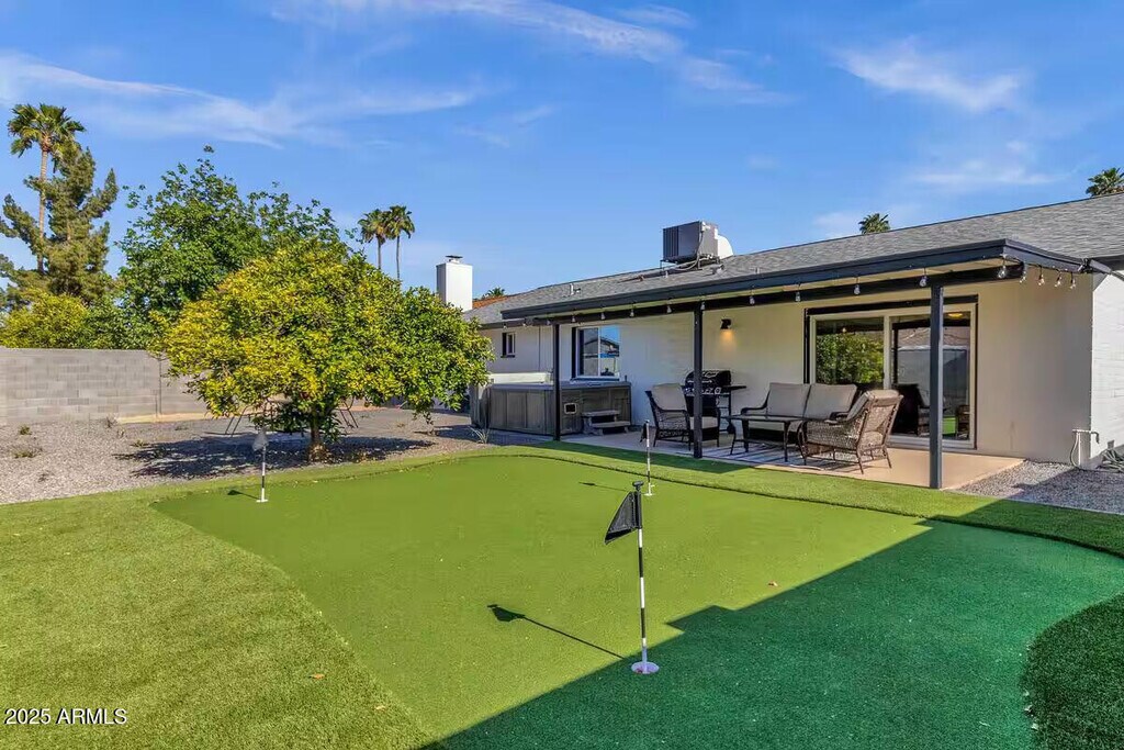 Freshly renovated Scandinavian-style four-bedroom home offering a perfect blend of modern comfort and relaxed elegance. Featuring 4 bedrooms,6 beds (1 King,1 Queen,4 twins),and 2 full bathrooms,this residence comfortably accommodates up to 10 guests. A chef's kitchen impresses with brand-new appliances,quartz countertops,a large island,and breakfast bar. Spacious single-level layout with 9-foot ceilings,no interior steps,ceiling fans,high-speed internet,and in-unit laundry. Outside,enjoy a private backyard retreat with a putting green,horseshoe pit,fire pit,patio seating,and ping-pong in the garage. TVs in every room with streaming access. Just minutes from ASU,Mill Ave,Old Town Scottsdale,and more!