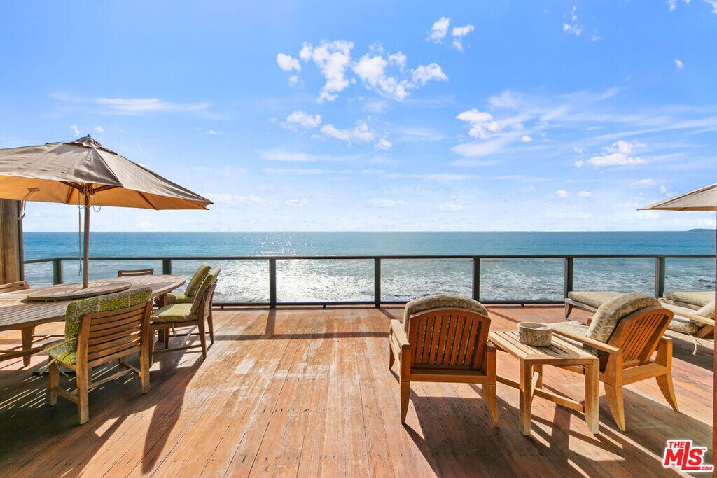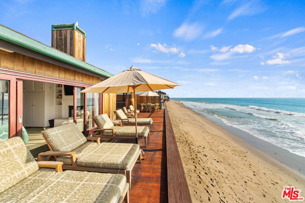 This exceptional Malibu Road beach home offers approximately 50 feet of coveted oceanfront, set on a pristine, sandy stretch of the iconic Malibu coastline. Designed to be both elegant and welcoming, the interior features rich hardwood floors throughout and an abundance of natural light. Floor-to-ceiling windows showcase sweeping ocean views and open onto a spacious beachfront deck perfect for enjoying the sights and sounds of the Pacific. The home includes three beautifully appointed bedrooms and a generous upstairs bonus room, ideal for lounging or entertaining. The beachfront primary suite is a serene retreat, with direct deck access and panoramic views that bring the coastline to your doorstep. A private, enclosed courtyard provides a peaceful space for outdoor gatherings, offering both seclusion and charm. With a dedicated staircase leading straight to the sand, this home delivers the ultimate in Malibu beachfront living. Available 6/1/2026 - 7/31/2026. MLS# 26645417