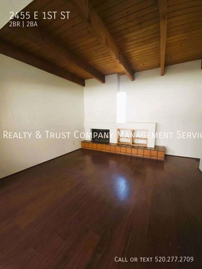Urban, Loft-Style Sam Hughes area townhome near U of A, Himmel Park & Library, University Banner Medical and many of Tucson's popular restaurants and shops. Gorgeous, beamed ceilings and hardwood floors with windows and natural light throughout. Spacious, loft bedroom upstairs with large walk-in closet, full size laundry closet and custom tiled bathroom. Open living area on mid-level features mid-century modern fireplace, oversized windows to the private balcony and adjoins the custom tiled kitchen. The lower-level bedroom/living space features French doors, a bathroom with a walk-in shower, small closet and access through either the front door or back patio door/garage. Street parking and private garage with remote. You'll love the active urban neighborhood which has a Zillow Walk Score of 82/100 and Zillow Bike Score 100/100 with sidewalks, bike paths, transit and public park nearby. All information deemed reliable but not guaranteed. Please contact our office to confirm pricing, availability and details at . To schedule your Showing now, call . REMINDER- We use an automated system called ShowMojo, when you call this number they will provide you a link that will bring you through a process that is REQUIRED before showing. Upon arrival be sure Bluetooth is on and a code is given. If you are having trouble accessing a code please feel free to call our office at and we will generate a one-time code to let you in! FEES- One-time Admin Fee: $150 due upon move-in with approved application. Pet Fees: $250 first pet / $150 each additional pet + $25 monthly pet rent per pet. Late Fees: $60 first day after funds due, $10 per day thereafter until paid in full. Lease Revision Fee: $50 Non-compliance Notice Fee: $35 Dishonored Funds Fee: $50 $75.00 Application Fee per person, for anyone over the age of 18 that will be residing in the home. Renters insurance: REQUIRED ($15/month if not provided). We do not advertise on Craigslist or Facebook, nor would we require funds to be wired or any funds paid through a payment app on your mobile device. Tucson Realty & Trust Co. Management Services, L.L.C. complies fully with all federal, state and local Fair Housing laws. To schedule your Showing now, call . All information deemed reliable but not guaranteed. Please contact our office to confirm pricing, availability and details at . We do not advertise on Craigslist or Facebook, nor would we require funds to be wired or any funds paid through a payment app on your mobile device. Tucson Realty & Trust Co. Management Services, L.L.C. complies fully with all federal, state and local Fair Housing laws. $250.00 Non-Refundable pet fee for the first pet, $150.00 Non-Refundable Pet fee for each additional pet. $25.00 per month, per pet, pet rent. Dbl Car Garage Pets Allowed W/Approval Private Balcony Washer/Dryer Wood Beamed Ceilings