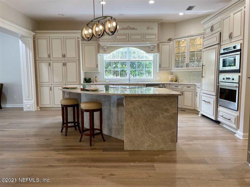 WELCOME HOME to this Spectacular Mediterranean Estate Home,found in the World Golf Village and directly on the King & Bear Championship Golf Course. Here you can relax on your Spacious Lanai with over 1,000 square feet of space. Fabulous Outdoor Living. Enjoy wonderful views of the Golf Course,Swimming Pool,Spa and Fire Pit. Take full advantage of the summer kitchen equipped with a Built-in Gas Grill,sink,refrigerator etc. The indoor/outdoor living style was built into this home with 90 degree,glass pocket doors in the living room and family room. 4 Car Garage. Large Estate Lot. Nice light Oak Floors. Unique home features include downstairs master and guest suites,a home office,3 additional bedrooms and 2 bathrooms located upstairs along with a bonus room. MLS# 2142222