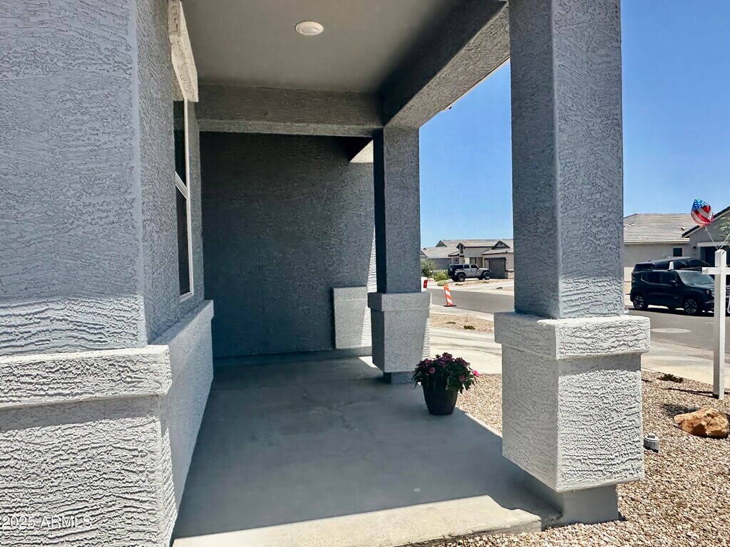 VIEWS VIEWS VIEWS! WOW! Backs up to farmland! Spacious lot with no rear neighborsoffering stunning mountain views and beautiful Arizona sunsets from your back porch! Inside,you'll find 3 spacious bedrooms plus a den,3 bathrooms,a huge walk in closet in the primary,separate den,an open great room. The kitchen features white and gray granite countertops,Espresso cabinets,a large island for bar seating,and a walk-in pantry. Enjoy a large side yard perfect for an RV gate and toys! This Smart Home includes modern tech and has an Energy Star rating to keep bills low. Also includes both front and back covered porches! The two-car garage is pre-wired for your EV. ALSO AVAILABLE FOR SALE