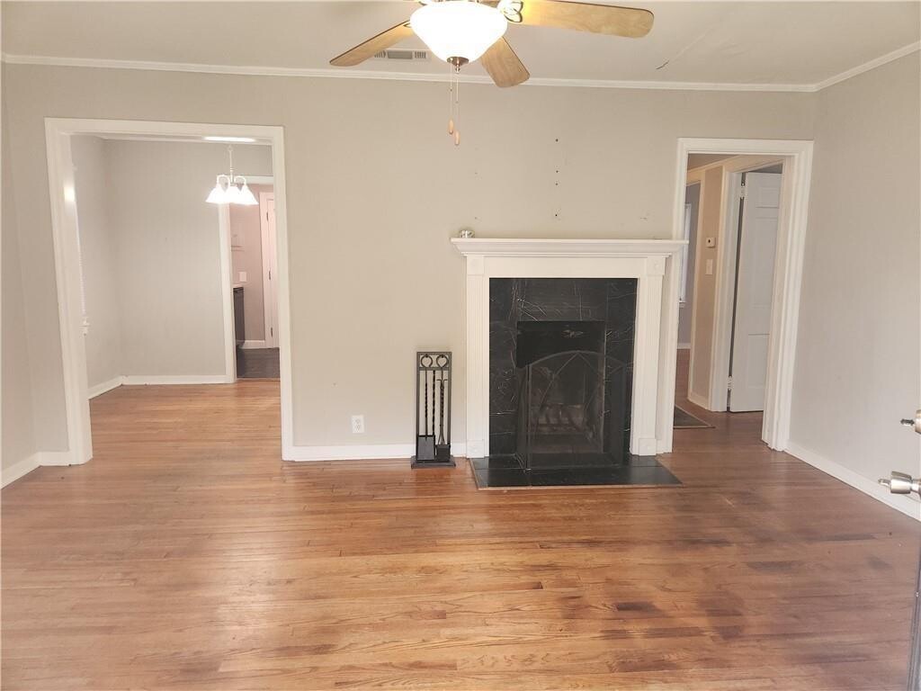 2 bedroom 1 bath home that is conveniently located in Midtown near shopping,restaurants and schools. This home has living room,dining room,kitchen,and an extra bonus room. Floors are hardwood and ceramic tile. There is a fenced private backyard with a covered area for entertaining and a storage building/shed. Fireplace is pretty but not in working condition.