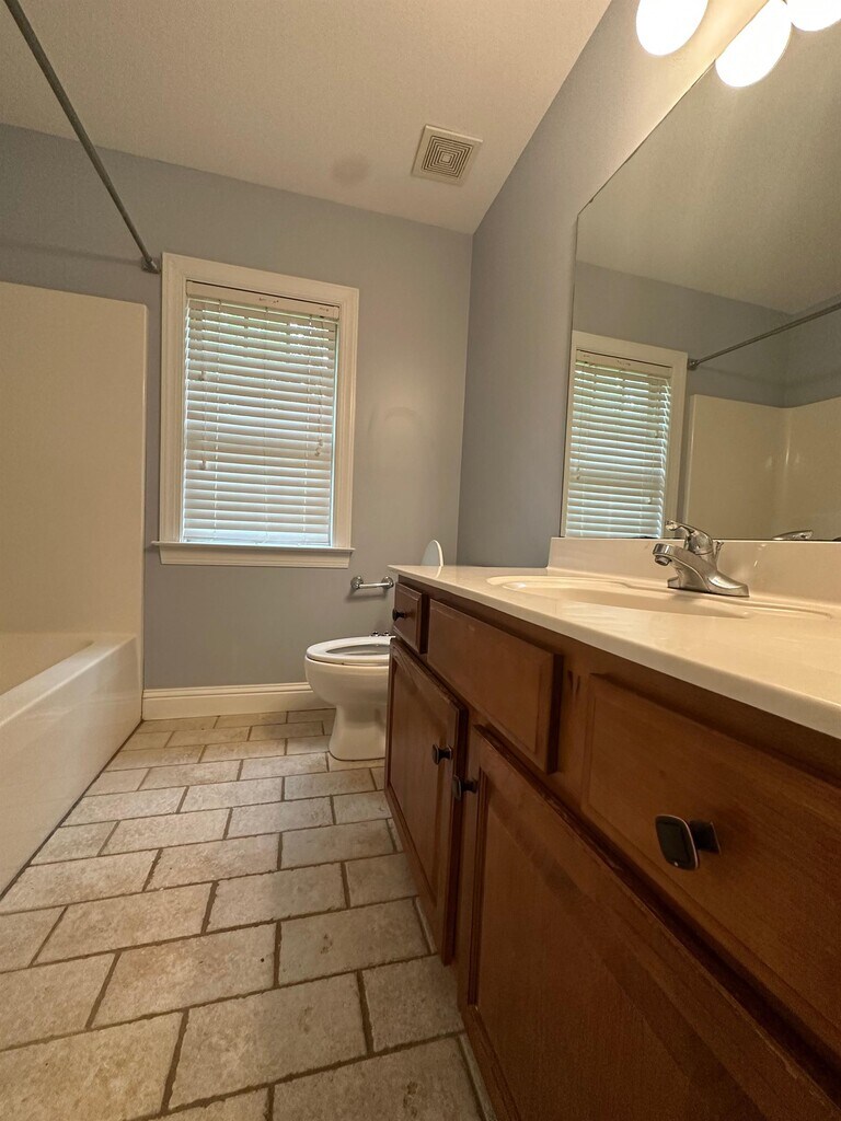 4 Bedroom House in West Macon - This large two-story home is located in a updated development in West Macon close to Middle Georgia State University. Open concept floor plan throughout the entire house. Large master bedroom is located on first floor with the master bathroom including a separate shower and bathtub. The house sits on a very spacious lot with a fenced in backyard is perfect for the whole family! Resident responsible for water, electric, natural gas, and lawn care.