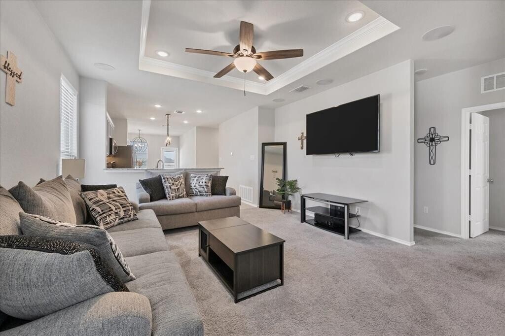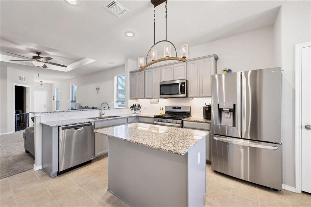 This beautifully upgraded home in Santa Rita Ranch sits on a spacious corner lot and offers the perfect blend of comfort, style, and functionality. The light-filled 3-bedroom home with a dedicated office features an open-concept layout designed for modern living. The sleek kitchen showcases a large center island, designer fixtures, and ample space for cooking and gathering, flowing seamlessly into the generous living area, ideal for relaxing or entertaining. All bedrooms are equipped with ceiling fans for year-round comfort, and the dedicated home office provides an ideal space for remote work or quiet study. A separate laundry room and attached garage add everyday convenience. Step outside to enjoy the covered patio and private backyard, perfect for unwinding or hosting guests. Residents enjoy access to Santa Rita Ranch’s award-winning amenities, including resort-style pools, a fitness center, parks, scenic trails, and vibrant community events that make every day feel like a getaway. Conveniently located just minutes from top-rated schools, Cimarron Hills Golf Course, Lake Georgetown, and more. Don’t miss this incredible opportunity to live in one of the area’s most sought-after communities. MLS ID 7053139
