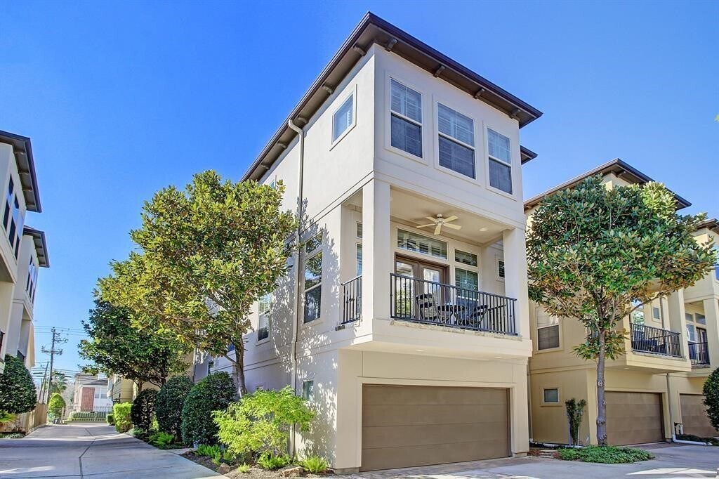 Stunning single-family home in the gated Detering Plaza community,centrally located near Rice Military,Memorial Park,Downtown,and the Galleria. Features include an inviting foyer with travertine floors,a first-floor bedroom with ensuite bath,walk-in closet,and private terrace. The second floor offers a spacious living,dining,and kitchen area with 10-foot ceilings and a balcony. The chef’s kitchen has a breakfast bar,stainless steel appliances,and ample storage. The third floor includes a primary bedroom with tray ceilings,two walk-in closets,and a dual-vanity bath,plus a second bedroom with its own bath. The outdoor space is updated with turf and fully fenced. Includes a two-car garage,guest parking,and washer,dryer,and refrigerator. MLS# 30578705