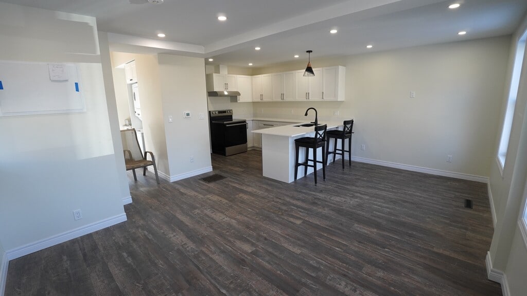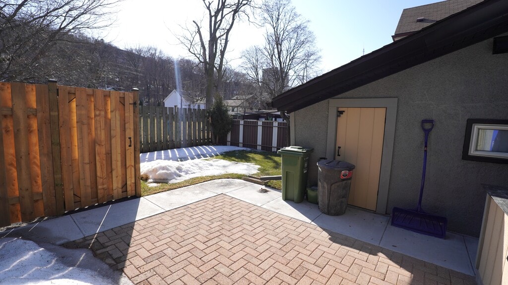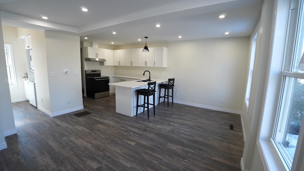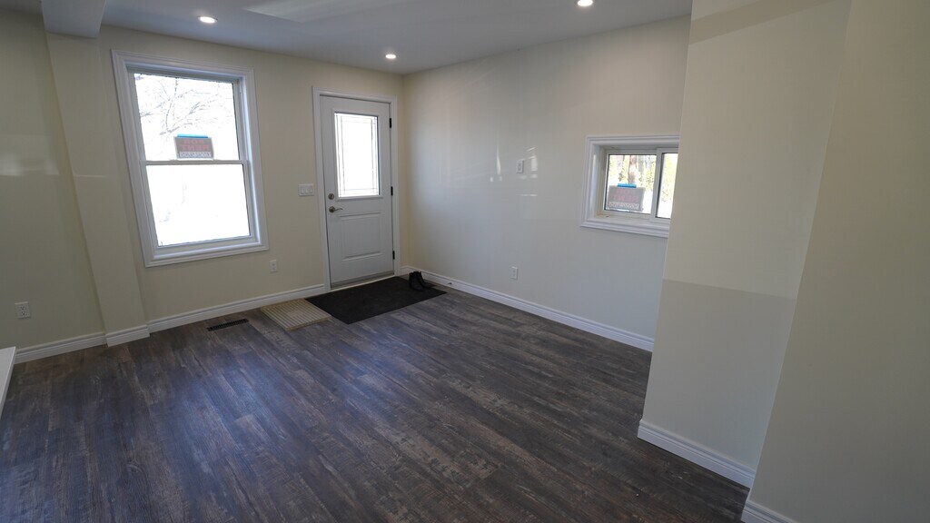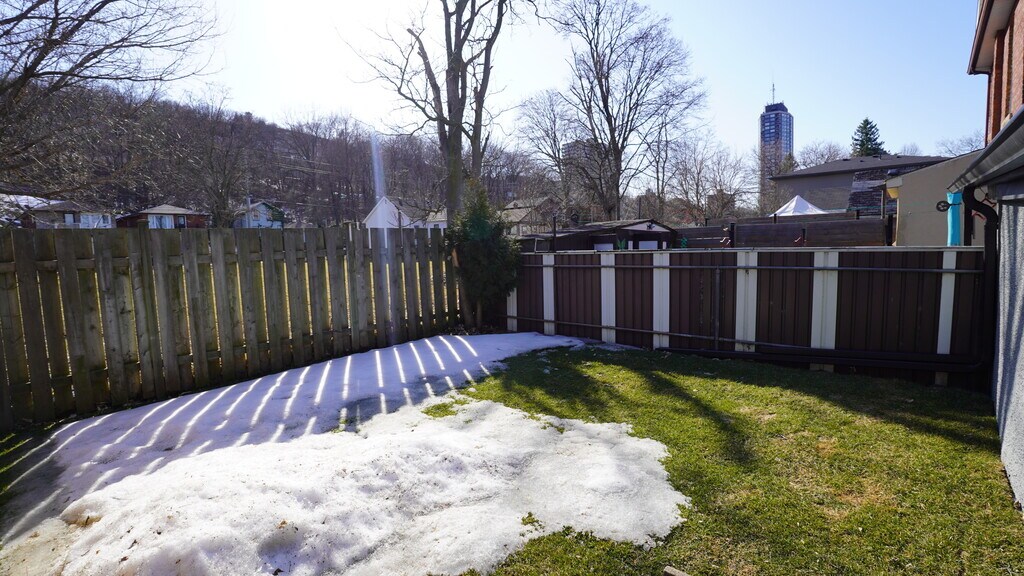 This meticulously renovated semi-detached residence is ideally situated in the vibrant downtown neighborhood of Corktown, with parks and trails directly across the street. Enjoy a prime location with convenient access to the GO station, recreational trails, parks, healthcare facilities, retail outlets, and some of Hamilton's premier dining establishments. Upon entry, you are greeted by a spacious open-concept design that seamlessly integrates living and dining areas. The refined kitchen boasts a peninsula-style island with a breakfast bar, stone countertops, and a dishwasher, with plenty of cupboard and counter space all complemented by abundant natural light from large windows that enhance the expansive living area. The first level also features a well-appointed four-piece bathroom with a tub and shower, and offers direct access to a private backyard—an ideal setting for outdoor living and entertaining during the warmer months. Additional amenities include a dedicated laundry area with an in-suite washer and dryer, complemented by ample storage space. A staircase with wood and wrought iron spindles leads to a versatile loft bedroom that can easily accommodate a home office or workspace. The residence is finished with luxury laminate flooring and contemporary fixtures throughout, and includes parking for two vehicles. This home represents a sophisticated urban living experience and is a residence you will be proud to call your own. Price includes two parking spots, pet friendly utilities extra