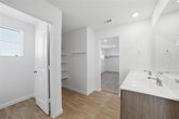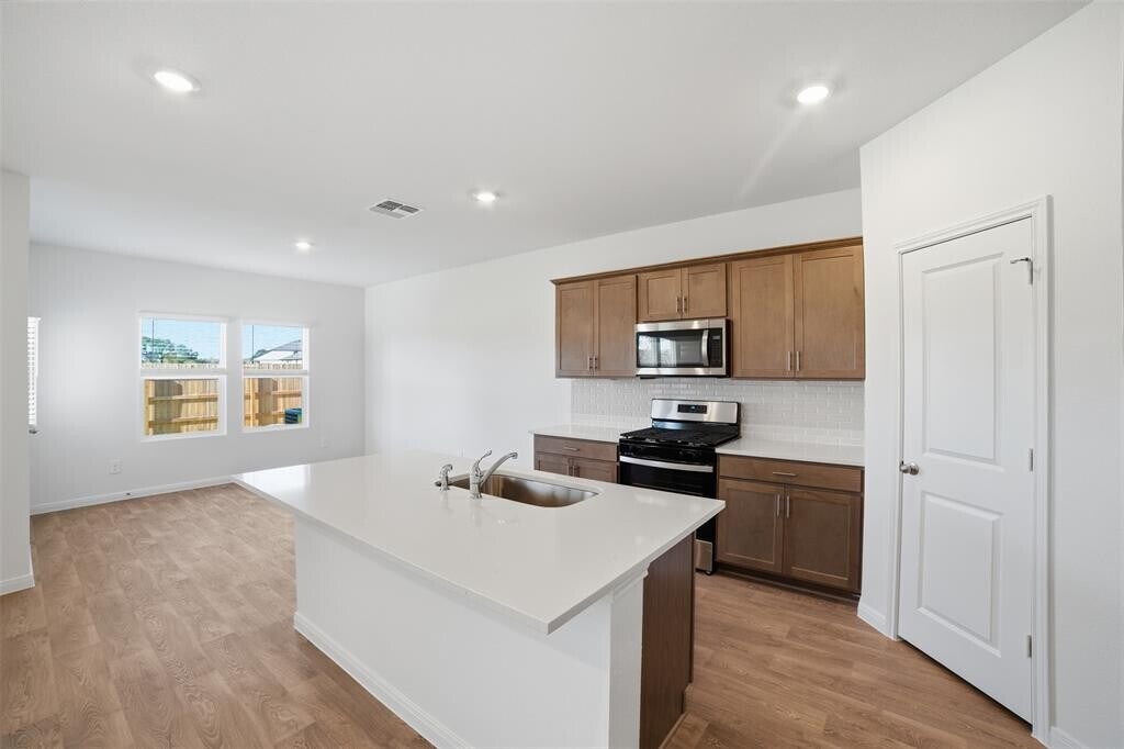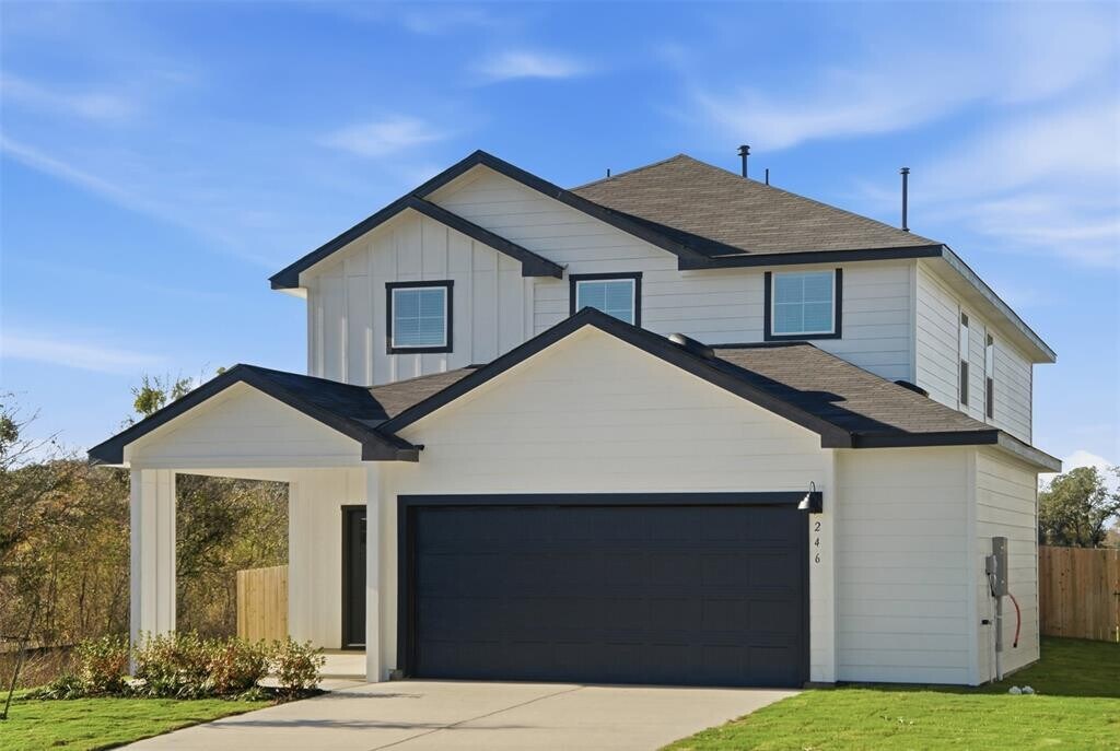 **Brand New Construction - Ready for You to Move In!** Live in this Contemporary two-story home, on a corner lot, and no neighbors in the back. Thoughtfully designed for comfort and functionality with 4 spacious bedrooms and 3 bathrooms, and cozy l game room perfect for family fun **First Level:** - Welcoming guest bedroom - Expansive open floor plan that seamlessly connects the living spaces - Gourmet kitchen featuring an abundance of cabinets and a generous pantry - Bright dining and living areas flooded with natural light - Storage space under the stairs - **Second Level:** - Generously sized master bedroom that invites to the master bathroom with a sophisticated walk-in shower, double vanity, and a massive walk-in closet that boasts a wonderful window - Two additional well-appointed bedrooms sharing a stylish full bathroom with a shower-tub - Convenient laundry room equipped with a brand new washer and dryer **Exceptional Features:** - Enjoy the peace and privacy of no rear neighbors - complemented by a large covered patio - Fully-equipped with sprinkler system, wireless thermostats, a deposit water heater - Secure electronic front door lock - Includes contemporary blinds, a refrigerator, and garage door openers.
