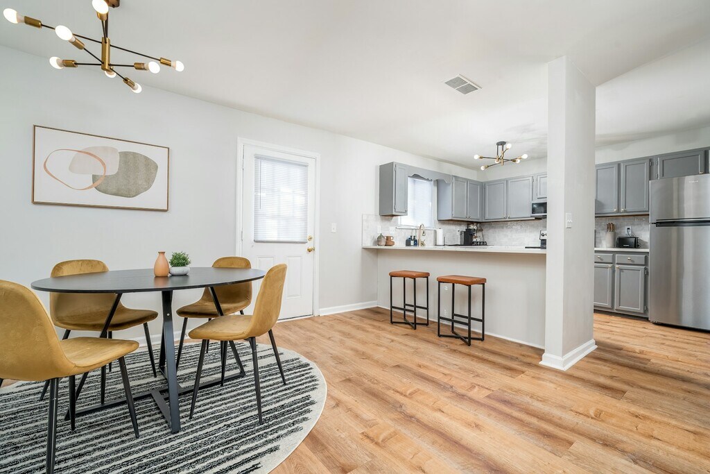 Step into Heritage Haus, your luxe Marietta escape just 5 mins from Marietta Square! This stylish 2BR townhome blends comfort & design in a quiet neighborhood. What You’ll Love: - FULLY FURNISHED, UTILITIES INCLUDED - Plush King & Full beds - Fully equipped kitchen & coffee bar - Private deck for morning coffee or wine - Spa-like bath w/ luxe touches - Pet-friendly, fast Wi-Fi, free parking, self check-in - High ceilings, MCM design & cozy fireplace Every detail here is designed for comfort, sophistication, and ease. Whether you’re visiting for work, relocating, or exploring Marietta, this stylish 2BR/1.5BA townhome offers the perfect balance of function and charm — just 5 minutes from Marietta Square. ?? Inside You’ll Find ?? ?? Sleep in Style – Plush king and full beds with premium linens ? Fully Equipped Kitchen – Includes full-sized appliances, bakeware, blender, Keurig, kettle, toaster, and dishwasher (cleaning supplies provided) ? Coffee Bar & Extras – Enjoy a stocked coffee bar with coffee, tea, sugar, and sweeteners ?? Spa-Like Baths – Stocked with plush towels, hair dryer, and Ginger Lily Farms Botanicals toiletries ?? Entertainment & Work – Smart Fire TVs in every room (bring your logins), fast Wi-Fi, and workspace-ready areas ?? Cozy Comforts – High ceilings, mid-century modern design touches, and decorative fireplace ?? Pet Policy ?? ?? We love dogs (SORRY, no cats allowed) and welcome one well-behaved, house-trained dog per stay with a pet fee. Please disclose your pet when inquiring. ? Bring your own pet blanket if preferred ? Pets are not allowed on furniture or bedding ? Cleanup inside & outside required ? Unauthorized pets or excessive pet hair may incur additional cleaning fees ?? Outdoor Space ?? Enjoy your private deck overlooking a peaceful, wooded backyard — perfect for morning coffee, evening wine, or a little fresh air with your pup. ?? Seamless Stay ?? ? Easy self check-in via keypad ? Free parking for two cars on private parking pad ? Central air & heat ? In-unit washer & dryer ? Quiet residential neighborhood near major hospitals, KSU, and Marietta Square