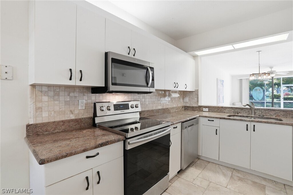 Experience exceptional annual rental living in this beautifully appointed 2-bedroom,2-bathroom condominium at 2460 Old Groves Rd Unit #102 in Naples. This home features an open,light-filled floor plan with vaulted ceilings that enhance the sense of space and elegance. The modern kitchen is equipped with updated cabinetry and stainless steel appliances,seamlessly connecting to the dining and living areas for effortless entertaining. Both bathrooms have been tastefully renovated,and the convenience of an in-unit laundry adds everyday ease. Step out onto the screened lanai and enjoy tranquil views over the serene lake and water feature,providing a peaceful retreat at any time of day. Located in a gated community with resort-style amenities,residents have access to multiple pools,a clubhouse,fitness facilities,tennis and bocce courts,fishing piers,and walking paths. Covered parking and guest spaces add practical convenience to this sophisticated home. Nestled just minutes from shopping,dining,and entertainment,and a short drive to Vanderbilt Beach and Mercato,this condominium offers the perfect combination of comfort,style,and a vibrant North Naples lifestyle. Ideal for those seeking a refined,move-in ready annual rental,this property is ready to welcome you to the very best of Naples living.
