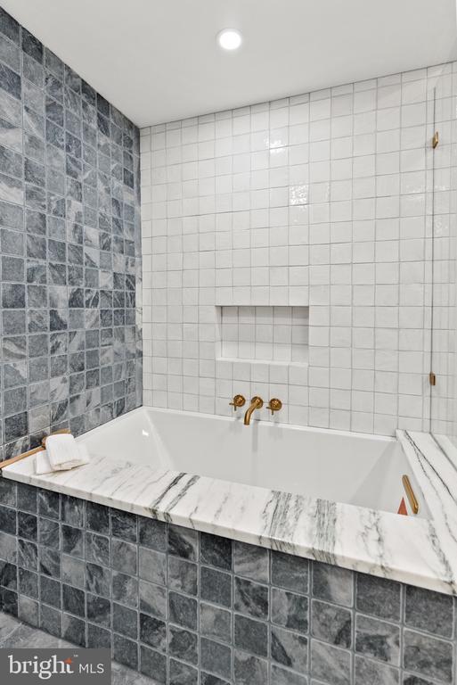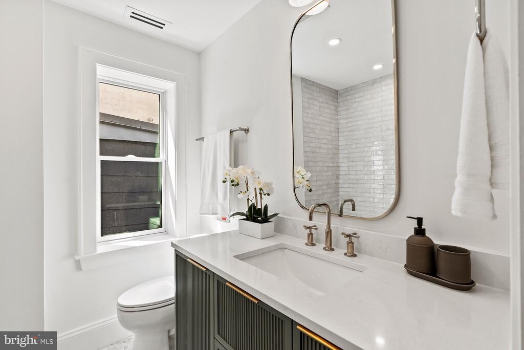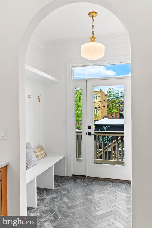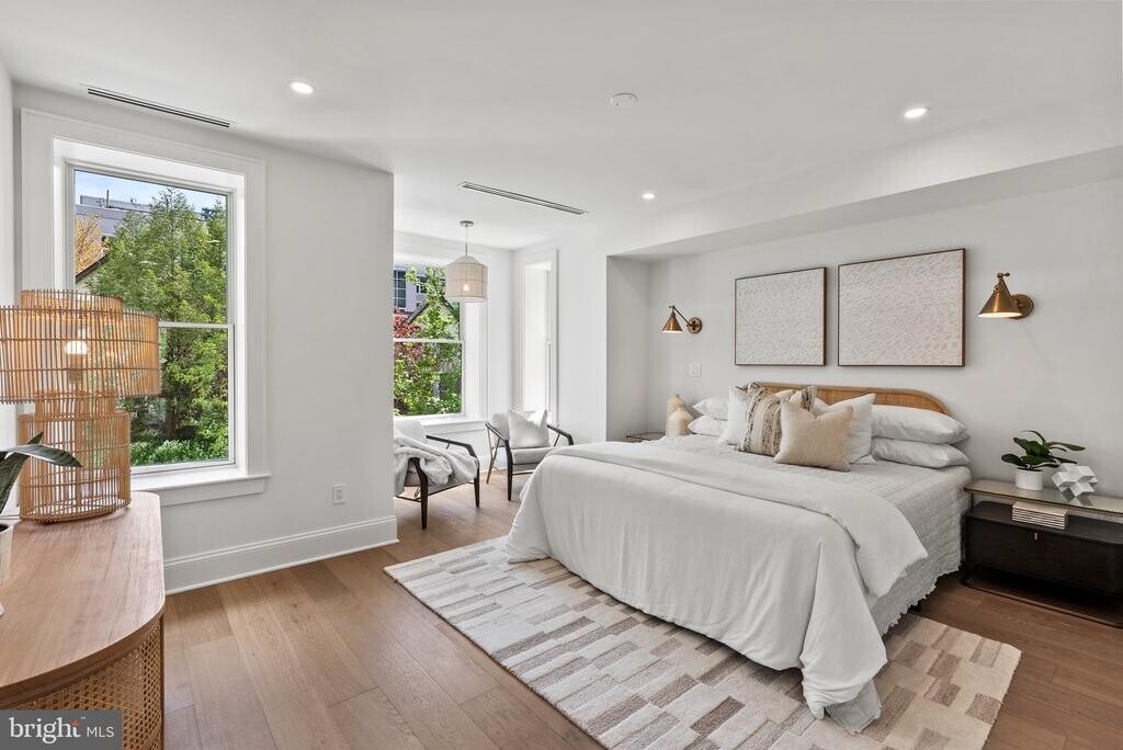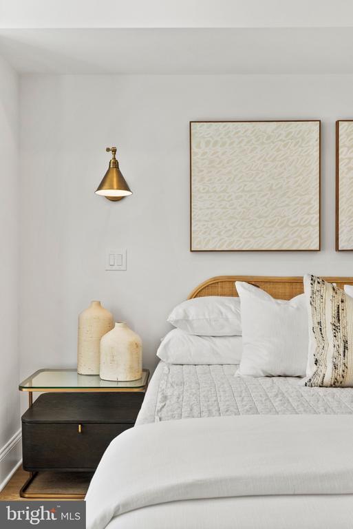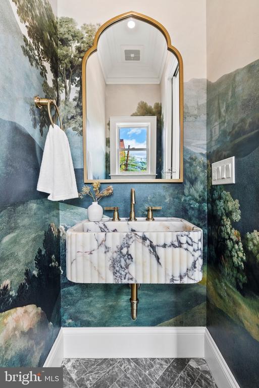 Historic Elegance Reimagined - This luxury full renovation by Ziba Management is a showstopper Victorian rowhome in the heart of the city, where historic charm meets curated, high-end design. Set on a quiet, tree-lined block, the home's charcoal-painted brick façade and turreted roofline offer striking curb appeal and a hint at the refined craftsmanship found throughout. Inside, four levels of beautifully finished living space unfold with wide-plank white oak floors, tall ceilings, elegant millwork, and abundant natural light. The main level is anchored by a sculptural central staircase and features a gracious living room with arched built-ins and a marble gas fireplace, a formal dining space, and a custom chef’s kitchen with honed marble countertops, natural wood cabinetry, Thermador appliances, and custom hardware. An exquisite powder room with custom mural wallpaper and a fluted marble sink makes a bold impression. Upstairs, the primary suite offers treetop views and a spa-inspired bath with dual vanity, wet-room shower / soaking tub, and dramatic custom tilework. Additional bedrooms and bathrooms, each with their own unique finishes, provide generous space for family, guests, or home office use. On the top level, a lounge with wet bar opens to a private roof deck with expansive city views—perfect for entertaining or relaxing above the trees. The fully finished lower level includes a well-appointed kitchenette/bar, living room, bedroom, and full bath with private entry, which is ideal for guests, an au pair suite, or rental potential. Out back, a fenced flagstone patio and yard lead to rare detached garage parking. Located between Adams Morgan, DuPont, Kalorama, and Mount Pleasant, you are truly in the center of it all! To name a few, The Line Hotel, Tail Up Goat, Tryst, so many other amazing restaurants, boutiques, and green spaces all at your doorstep!