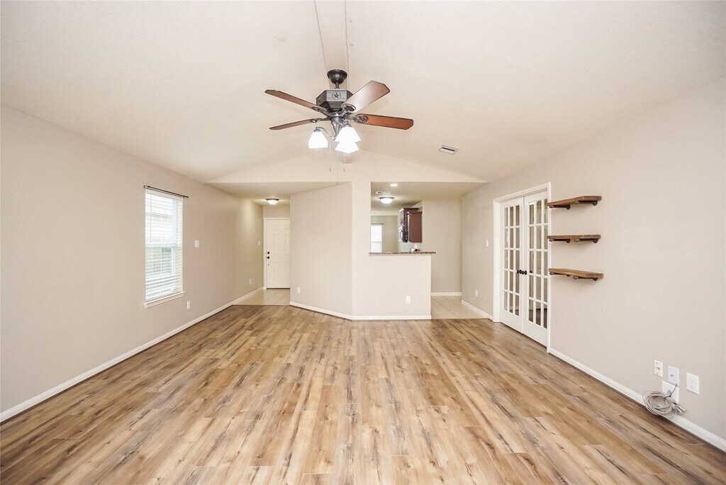 AVAILABLE NOW! This home is in great condition and ready for you to move in! Tucked away in the back of the community (low traffic),it's conveniently located near Hwy 290 and other nearby shopping and dining,including outlet mall. Enter this lovely home and take notice of the stunning farm house-look laminate floors,high ceiling and open concept layout. The kitchen has sparkling granite counters,stainless appliances (fridge included),lots of cabinets and a light & bright breakfast area next to large windows. Off the living area you will find a flex room w/ stylish French doors that can be used as a study,game room or extra bedroom! Primary bedroom features a large walk-in closet,ensuite with a garden tub & separate shower,as well as French doors to a covered patio w/ fan. Two bedrooms,a hall bath w/ shower tub combo & indoor laundry round out the home. Large fully fenced backyard perfect for your outdoor needs. Inquire for landlord requirements & schedule your visit today! MLS# 31685510