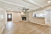 Charming one-story home nestled on a quiet cul-de-sac in Lakewood Heights,just minutes from Lake Houston! Situated on an oversized,tree-filled lot,this property offers a rare park-like setting with plenty of privacy. The interior has been recently updated with fresh paint and modern fixtures throughout. This 3-bedroom,2-bath home features a spacious living area with a cozy gas log fireplace and abundant natural light. The kitchen comes fully equipped with a gas cooktop,electric oven,microwave,dishwasher,and refrigerator. All bedrooms are conveniently located on the first floor. Enjoy a fully fenced backyard with two separate fenced areas,a patio/deck,and mature trees—perfect for relaxing or entertaining. Additional features include a detached 2-car garage,boat/trailer parking,storage shed,Low-E windows,and recent HVAC. Close to lake access,fishing,and boating. Pets considered case-by-case. Move-in ready! Available May 1st. MLS# 68492253