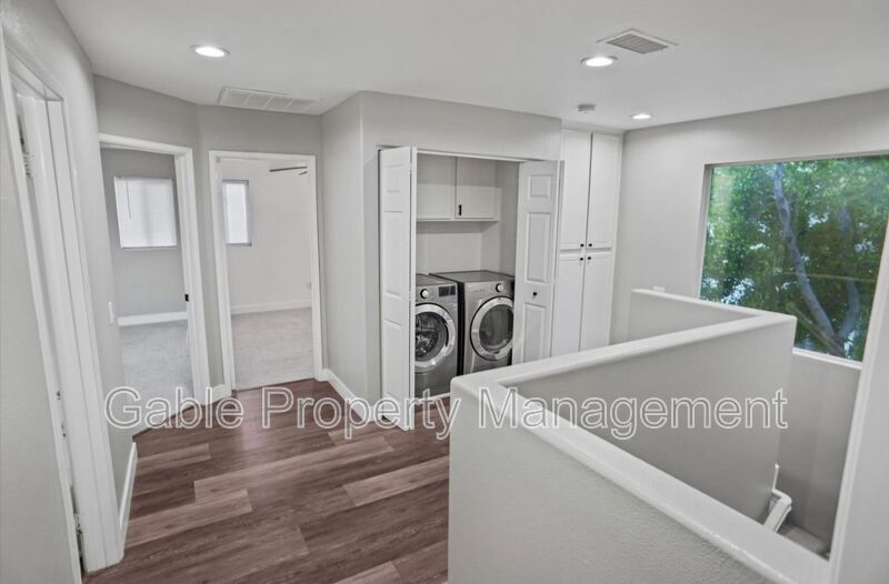 Welcome to 24622 W Montevista Cir, Valencia, CA 91354—a charming 3-bedroom, 3-bath home nestled in a serene cul-de-sac. This beautifully maintained corner property boasts an attached garage and ample street parking, providing convenience and ease of access. Step inside to discover an open floor plan with elegant wood flooring, a cozy fireplace, and abundant natural light. The spacious living area seamlessly flows into the dining room and a modern kitchen, featuring stainless steel appliances, pristine white cabinetry, and a stylish tile backsplash. Sliding glass doors lead to a private back patio, perfect for outdoor dining and relaxation. Upstairs, the primary suite offers a tranquil retreat with a walk-in closet, mirrored wardrobe, and an en-suite bathroom equipped with dual sinks, a soaking tub, and a separate shower. Two additional bedrooms are well-appointed with generous closet space and share a contemporary bathroom. A convenient laundry area is also located on the upper level. Enjoy community amenities, including a sparkling Olympic-size pool and a well-maintained tot lot. This delightful home is ideally situated near top-rated schools, parks, shopping, and dining options, making it the perfect choice for comfortable and convenient living.